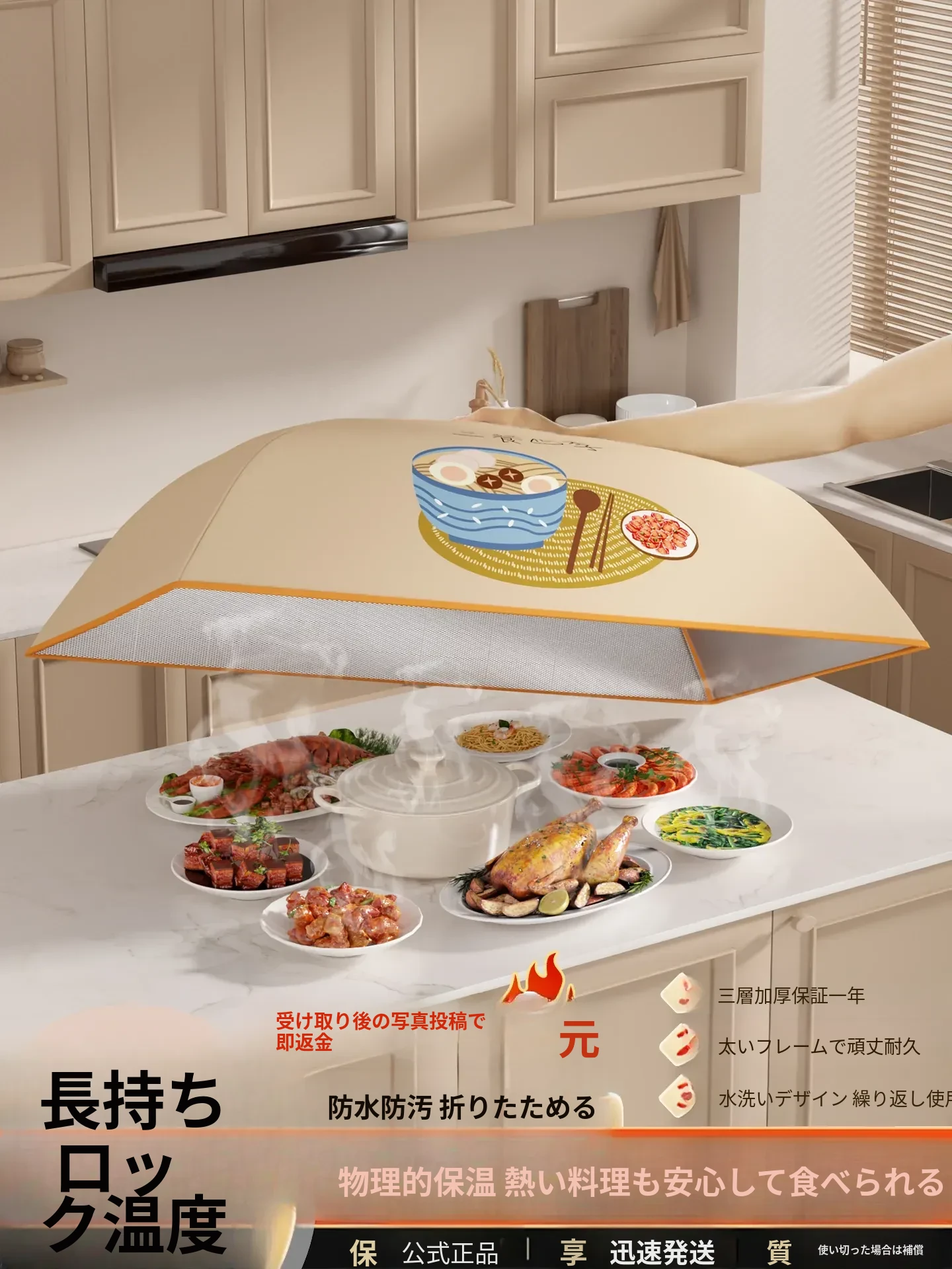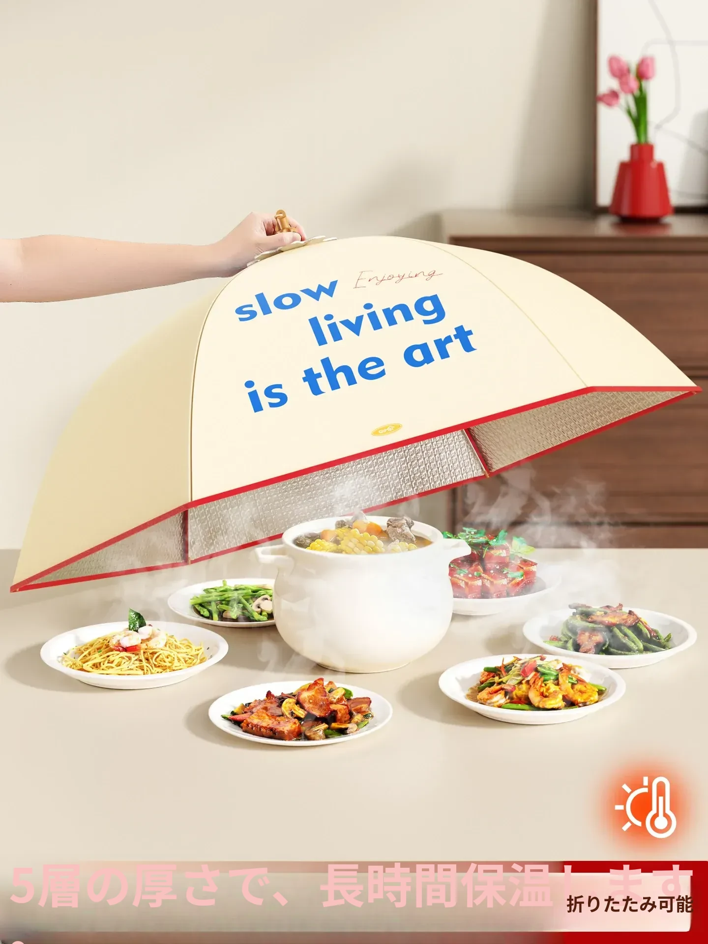2025年新登場!日本製の保温カバー・折りたたみ式食卓カバー!冬の残り物も美味しく保温!家族の食卓を彩る便利な食品カバーです!