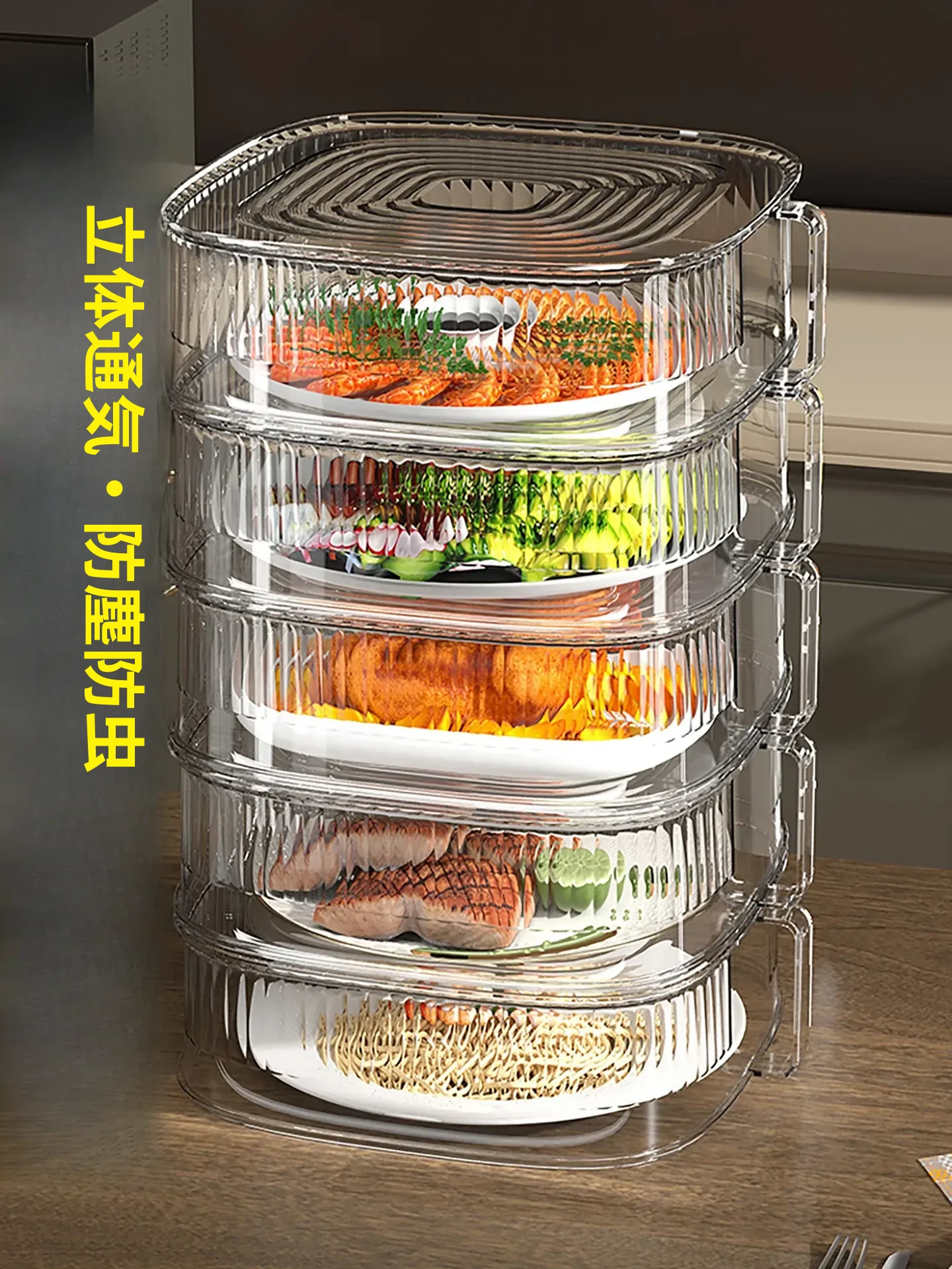 保温カバー付き料理カバー|家庭用キッチン必須アイテム|テーブルを美しく保ち、食材や残り物をしっかりカバー|多層収納ラックで、スマートに整理整頓!
