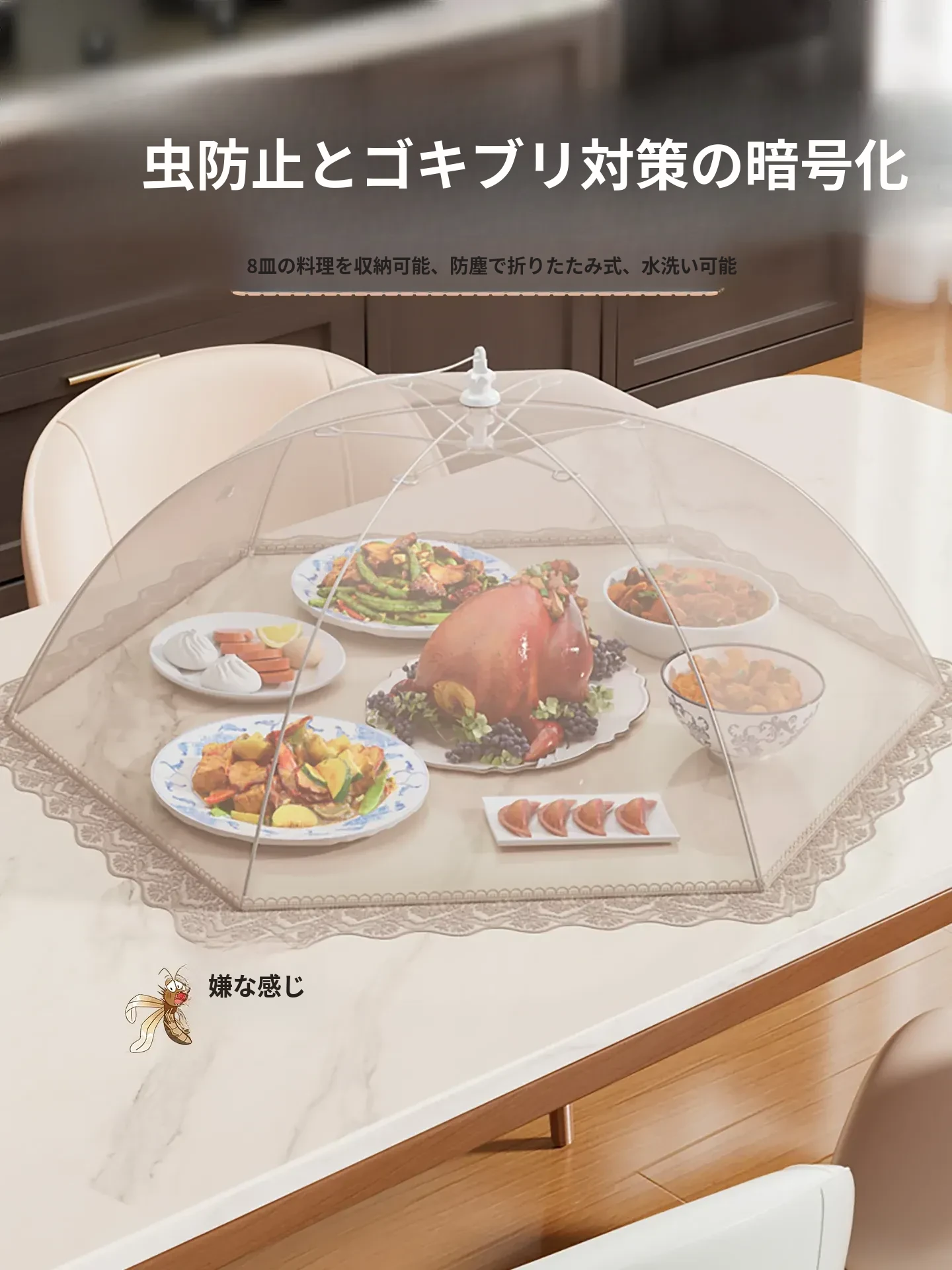 家庭用 折りたたみ式 食品カバー ほこりやハエから守る!残り物やおかずをしっかりガードする食卓用ネットカバー!使いやすく、食材を新鮮に保つ必需品!