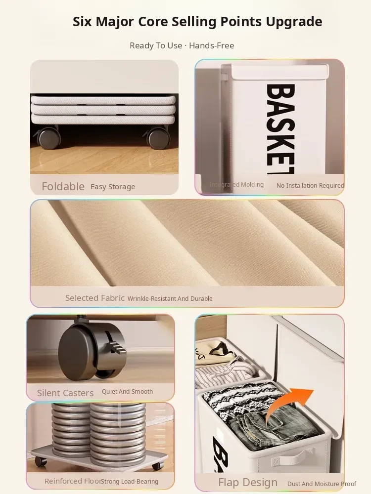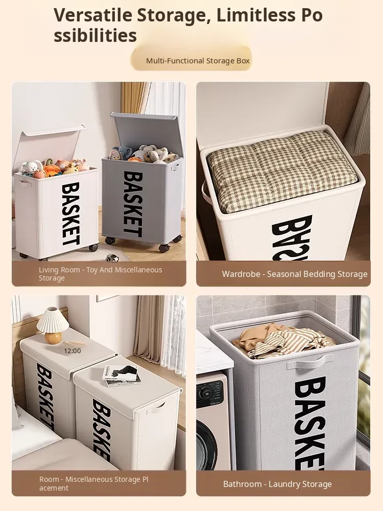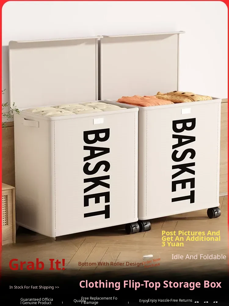 Large Size with Lid✅Ivory White [All-Round Rotating Pulley | Extra Large Capacity | Thick Steel Frame]