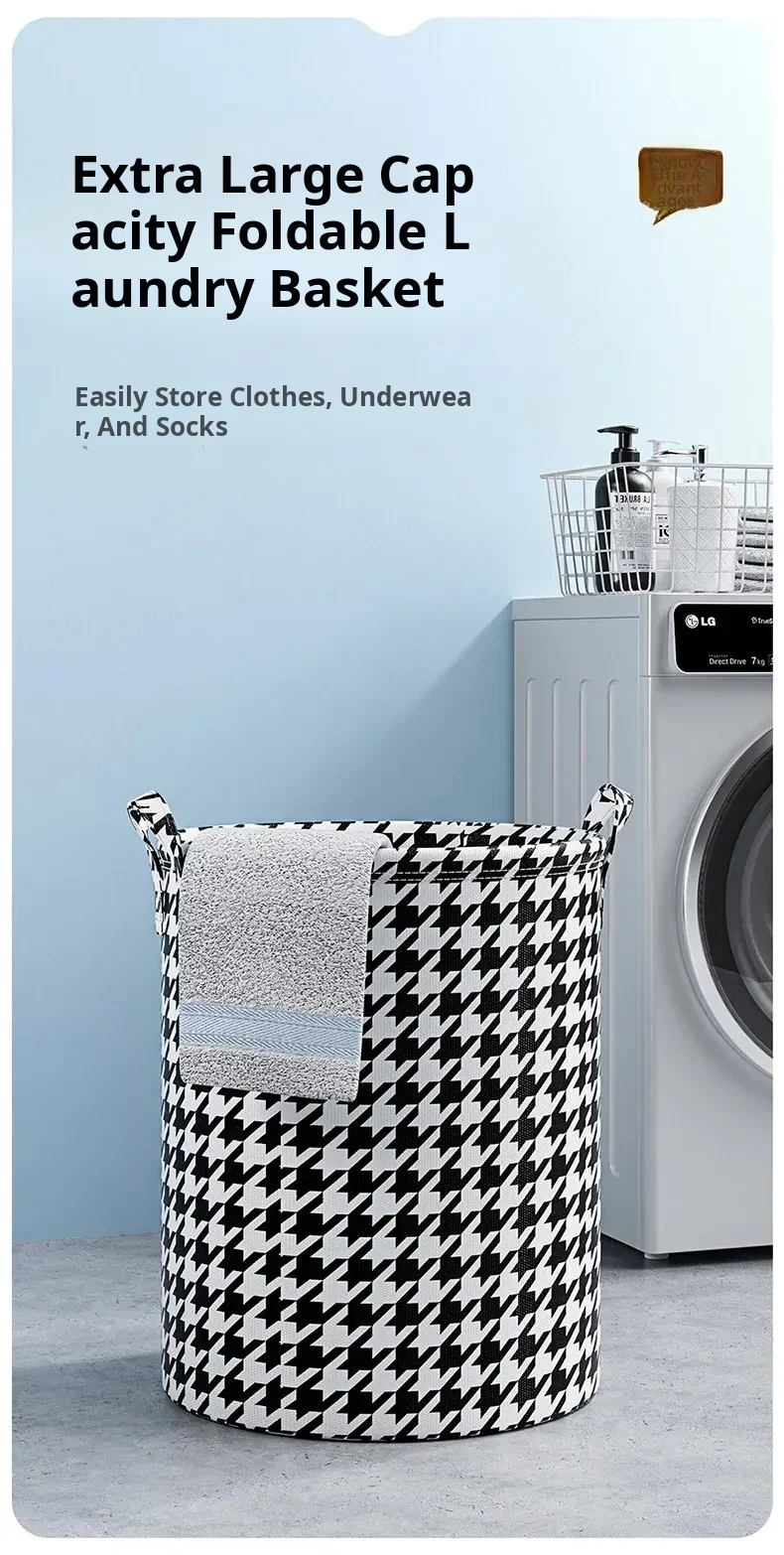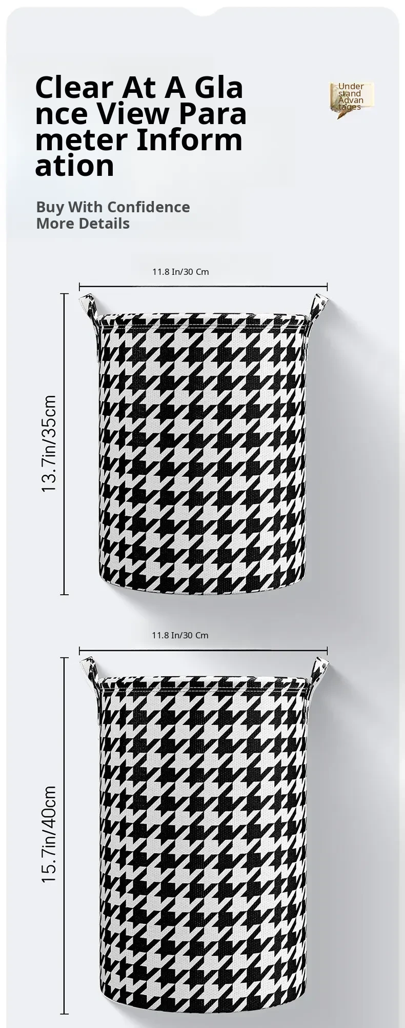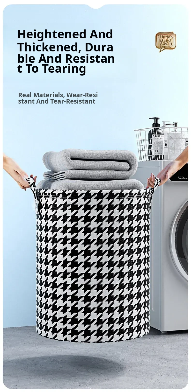 Dirty Clothes Storage Bucket-Large Size-Houndstooth