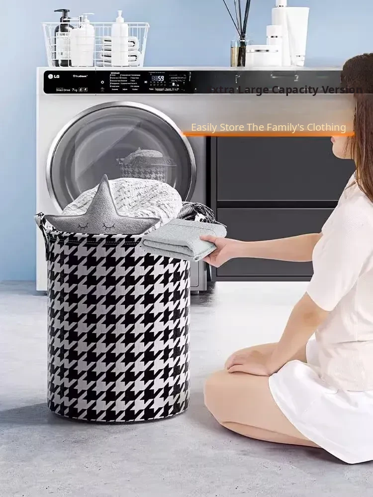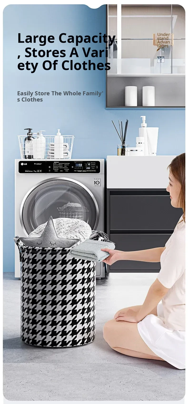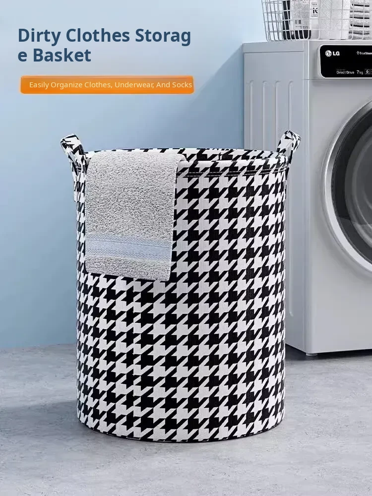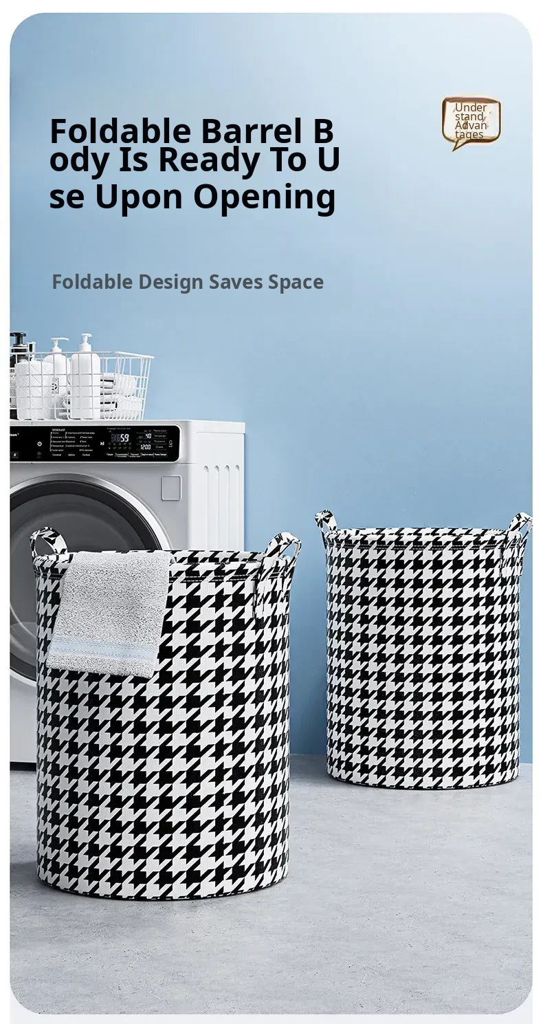 Dirty Clothes Storage Bucket-Large Size-Houndstooth