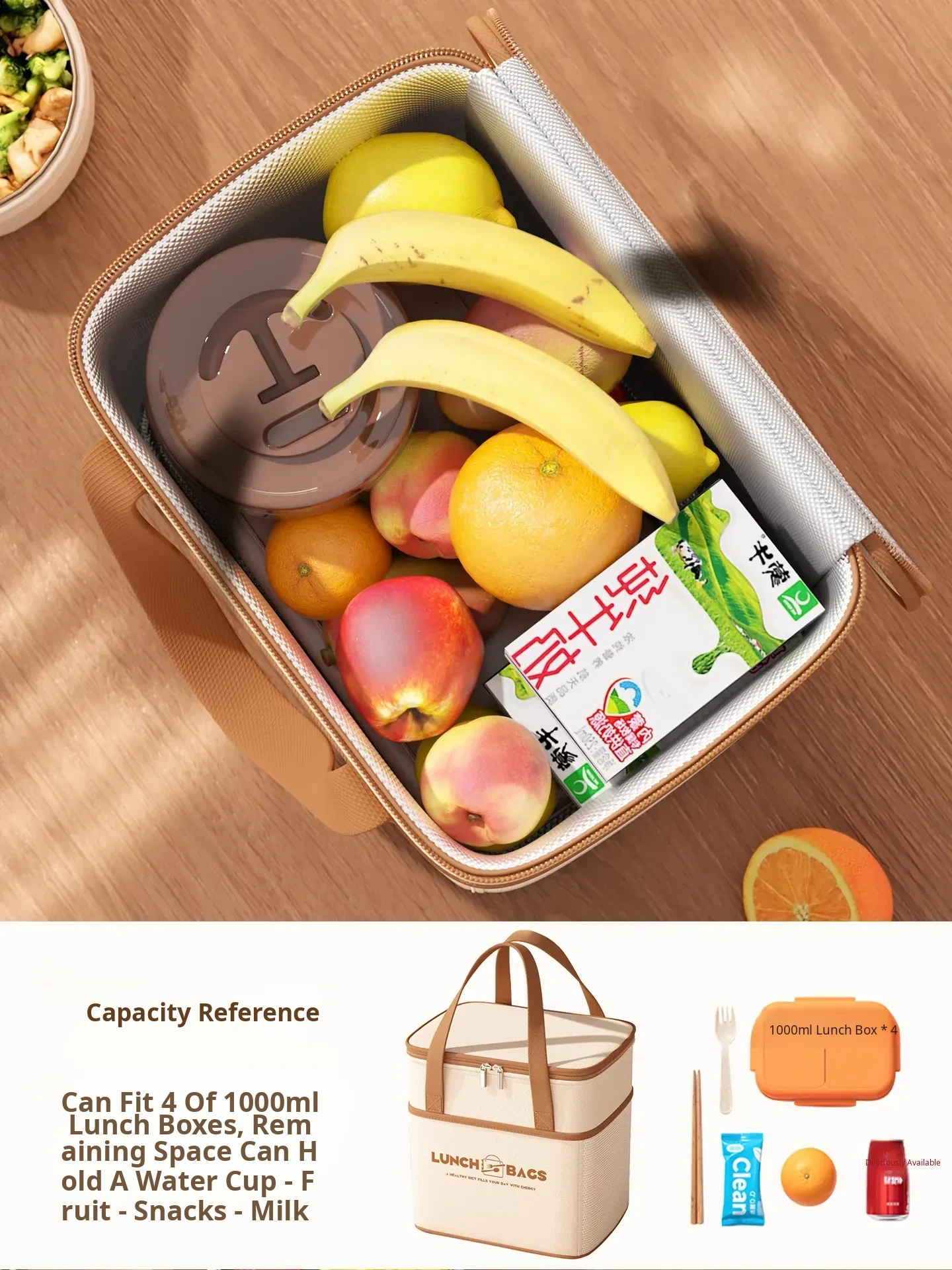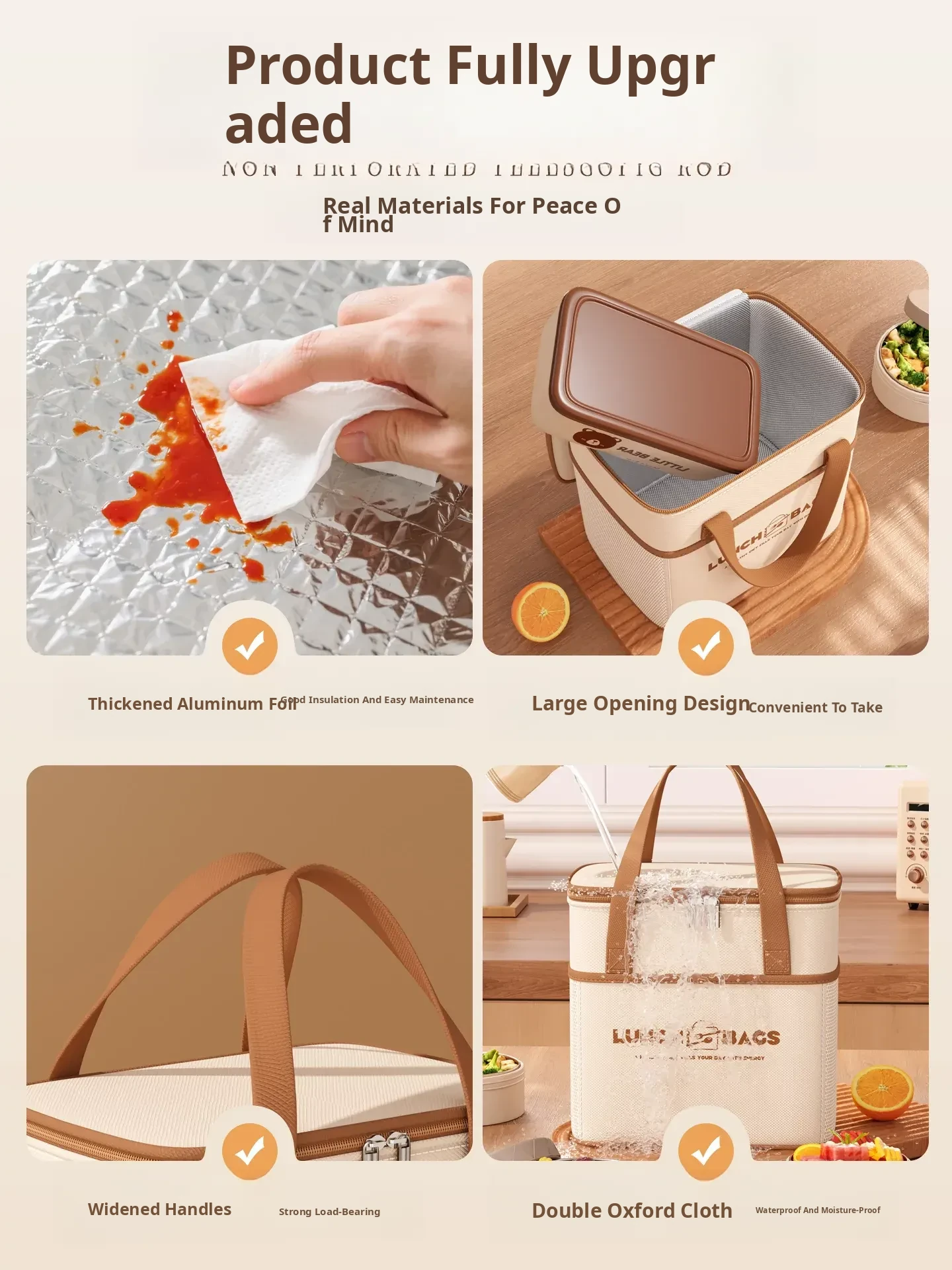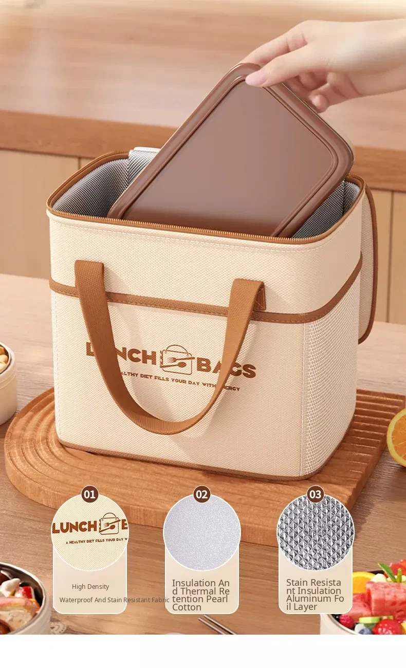 Insulated Lunch Bag with Thick Aluminum Foil - Large Capacity Bento Tote for Office Workers and Students, Perfect for Taking Meals to Work or School