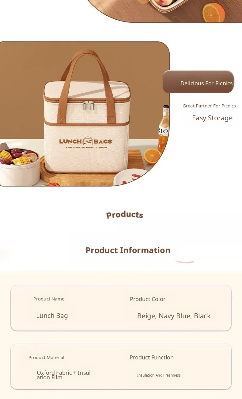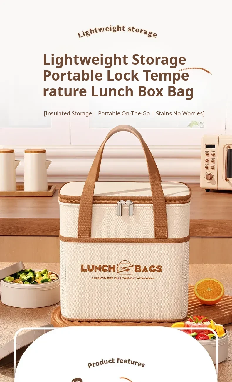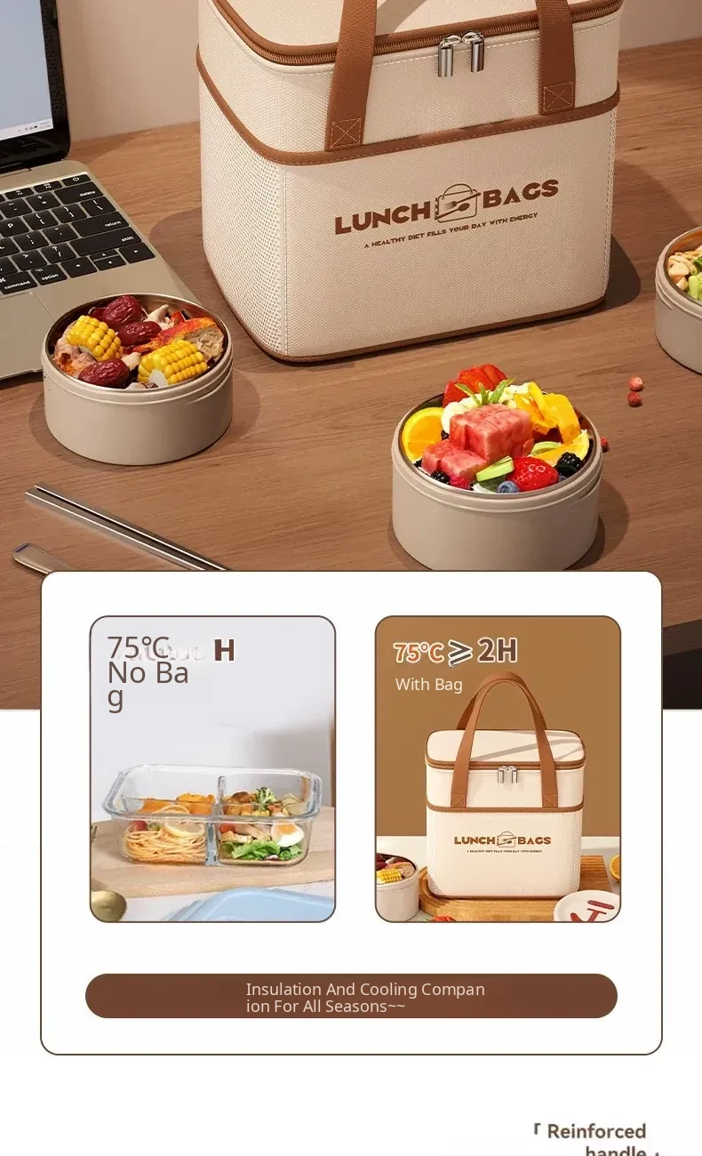 Insulated Lunch Bag with Thick Aluminum Foil - Large Capacity Bento Tote for Office Workers and Students, Perfect for Taking Meals to Work or School