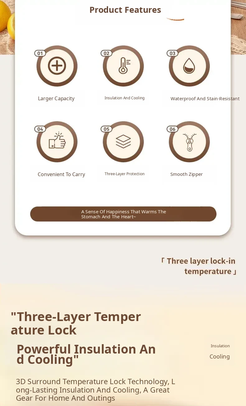 Khaki - Medium【Four-layer thick aluminum foil / Long-lasting insulation / Waterproof and stain-resistant / Extra-large capacity】