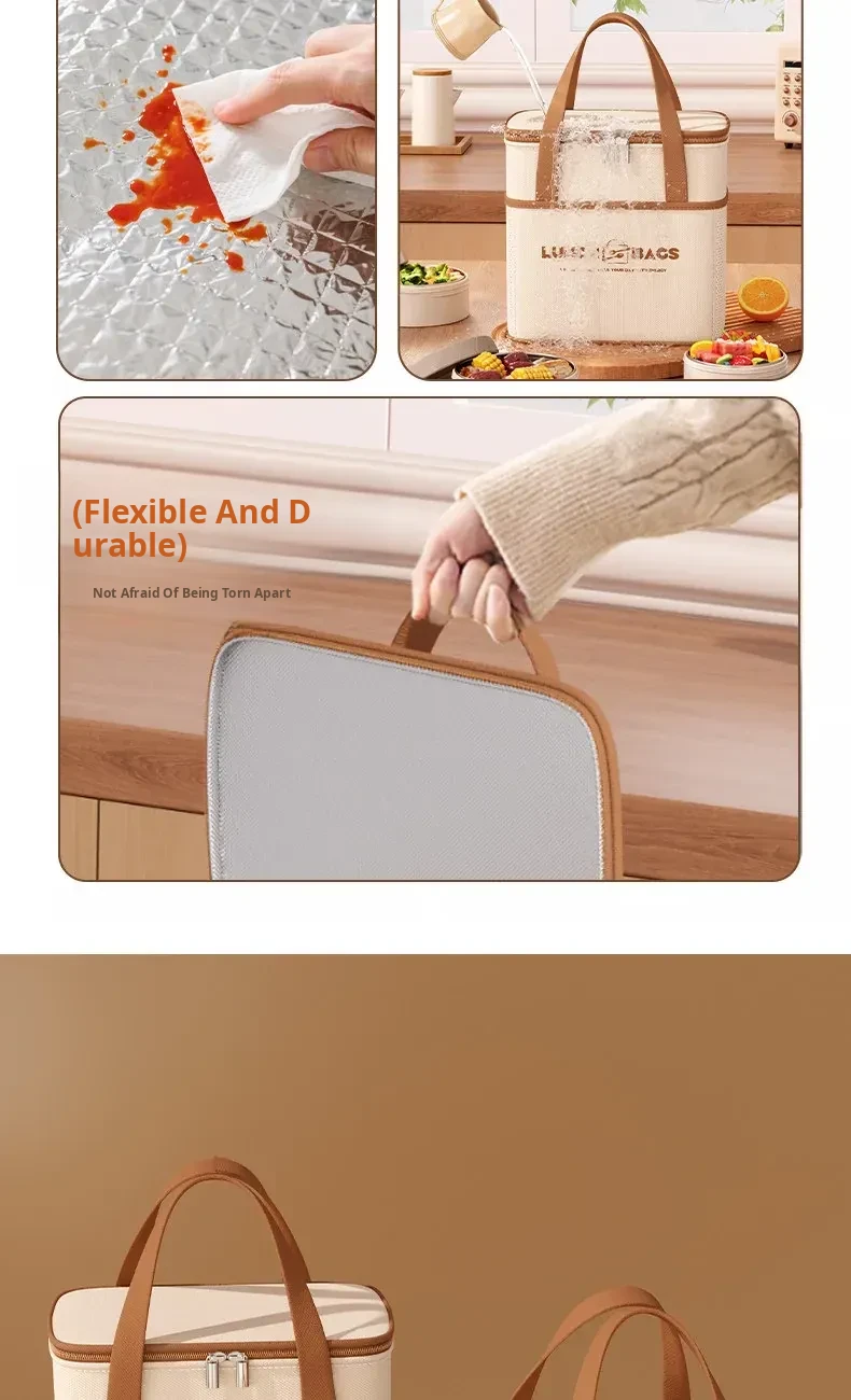 Khaki ⭐ Extra-large【Four-layer thick aluminum foil / Long-lasting insulation / Extra-large capacity / Waterproof and stain-resistant】