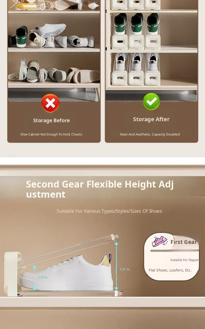 Affordable! 2 Boxes⭐Cheese Apricot [8 Light Luxury Adjustable Shoe Racks]