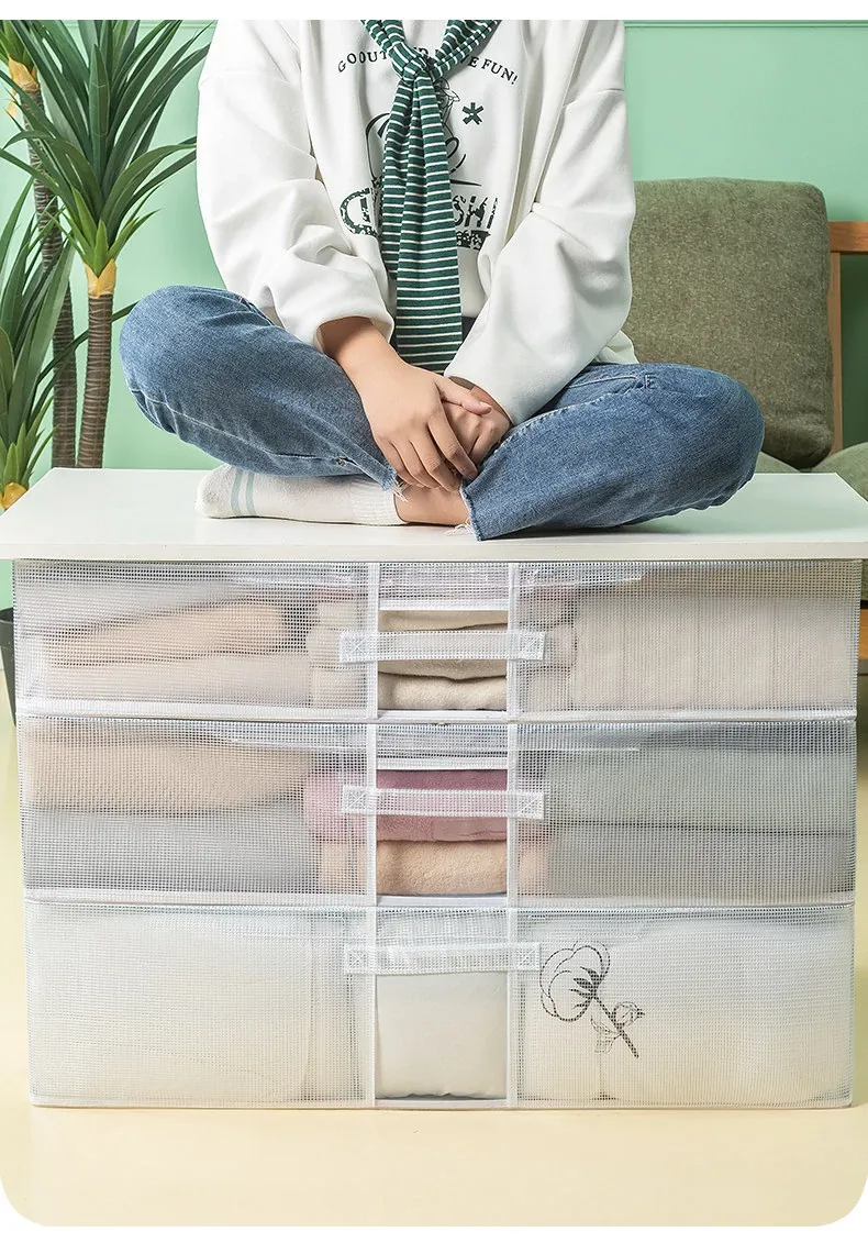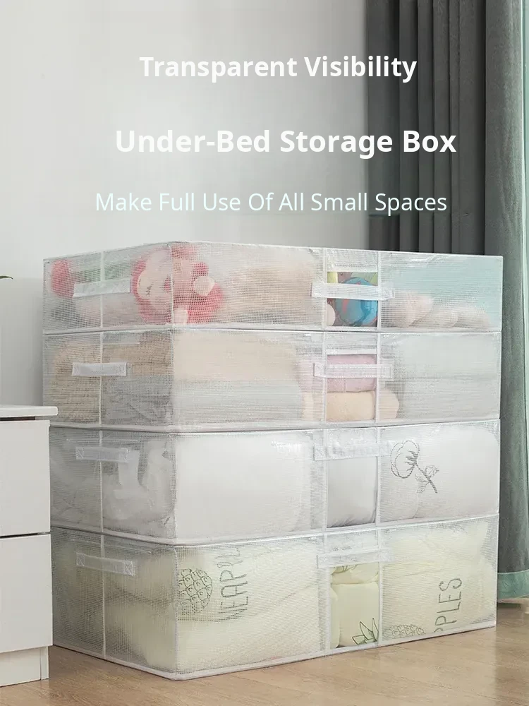 Under-Bed Storage Box - Ultra-Slim Transparent Organizer for Clothes and Quilts - Perfect for Low Beds - Maximize Space with This Essential Storage Solution!