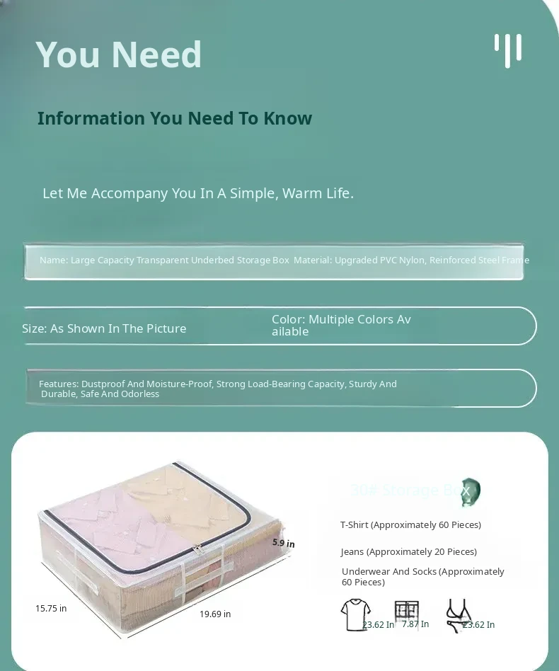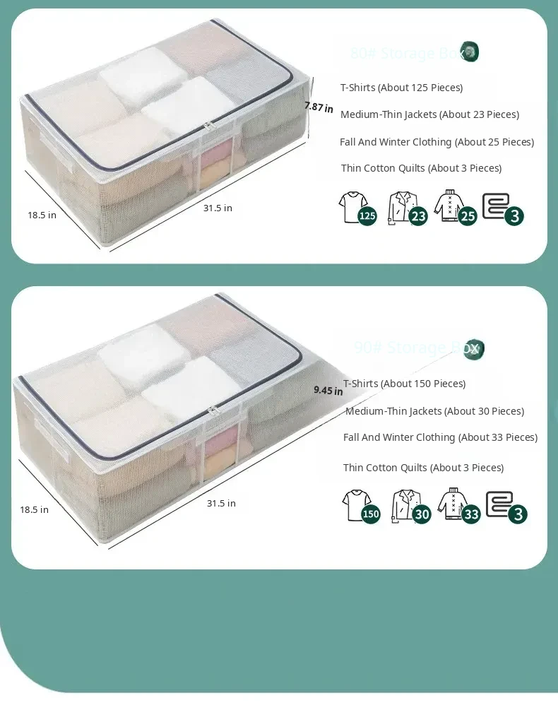Pvc Bed Bottom Storage Box-90 # [31.50in*18.50in*9.45in]