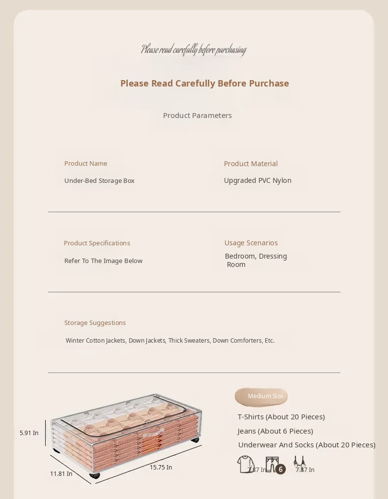 Extra Large Size [31.50in*18.50in*5.91in] (Can Store about 65 Pieces of Winter Clothes or 7 Thin Winter Quilts)