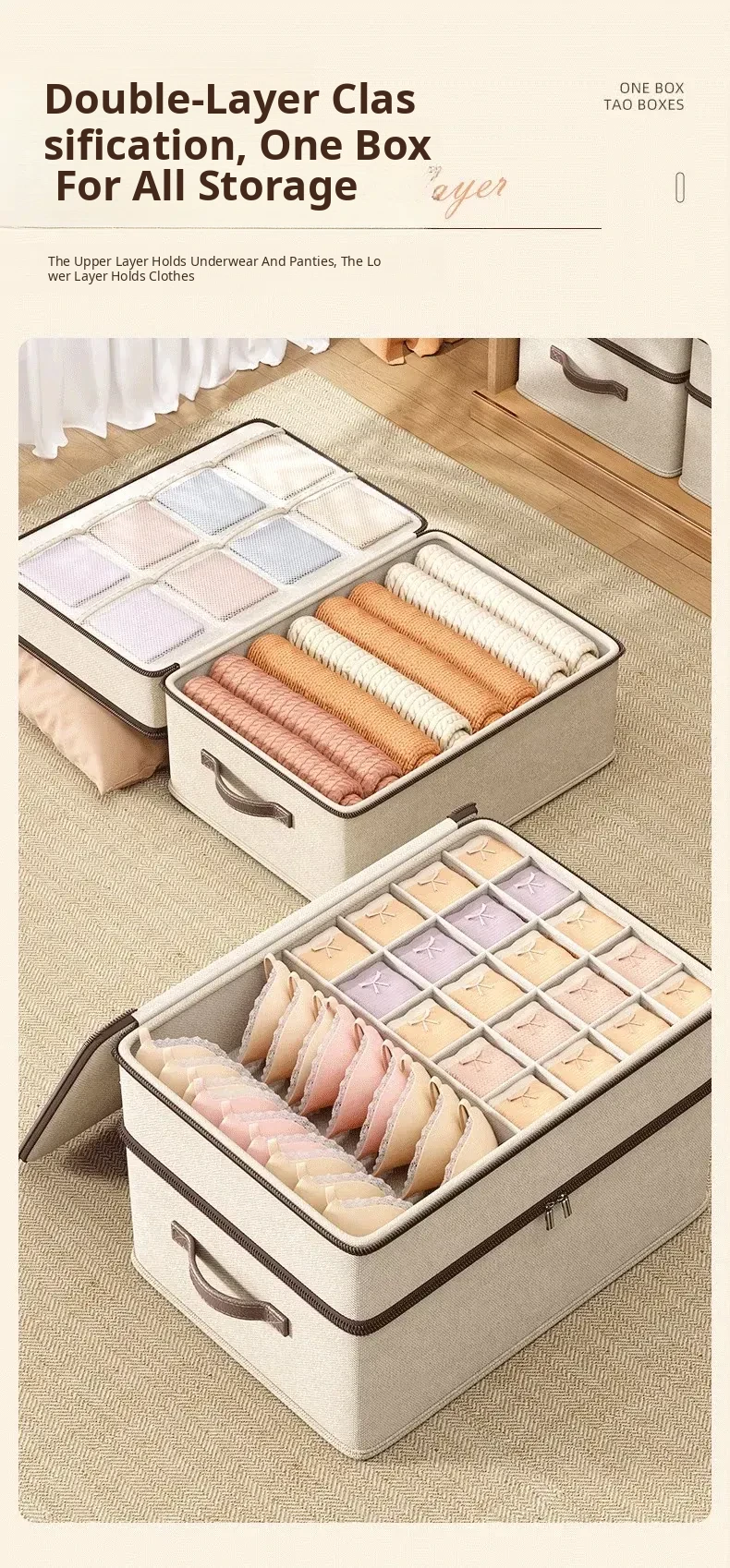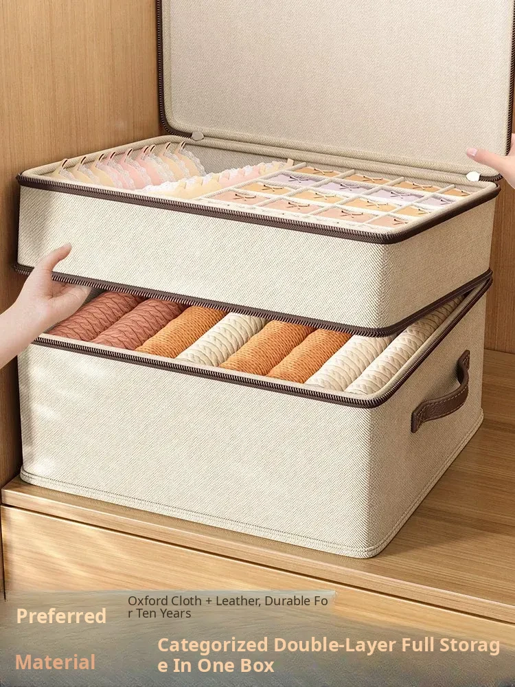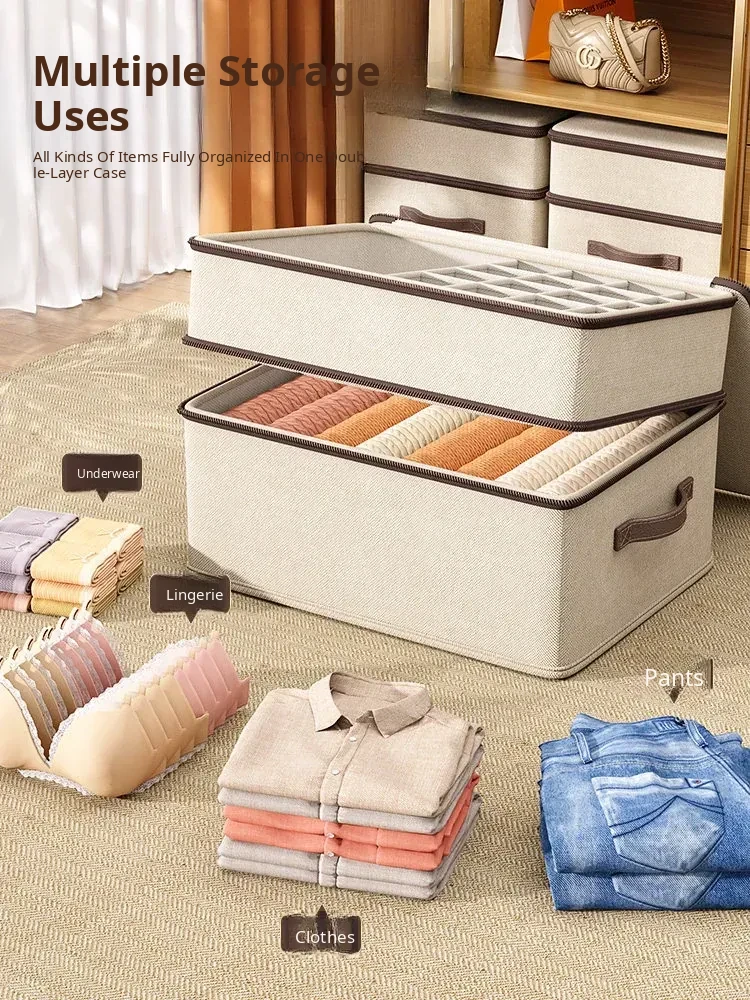 Underwear Storage Box with Dividers - Dual-Layer Organizer for Socks, Panties, and Bras - Foldable & Lidded, Perfect for Home Closets and Efficient Space Management!