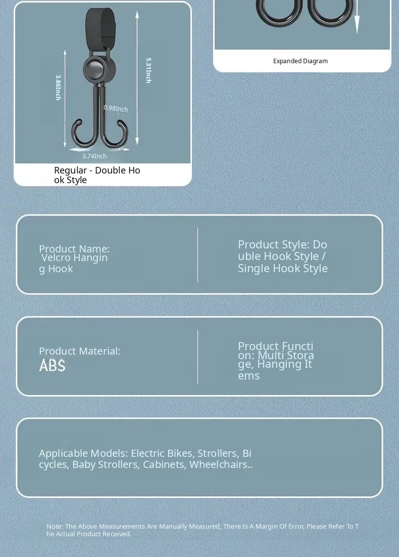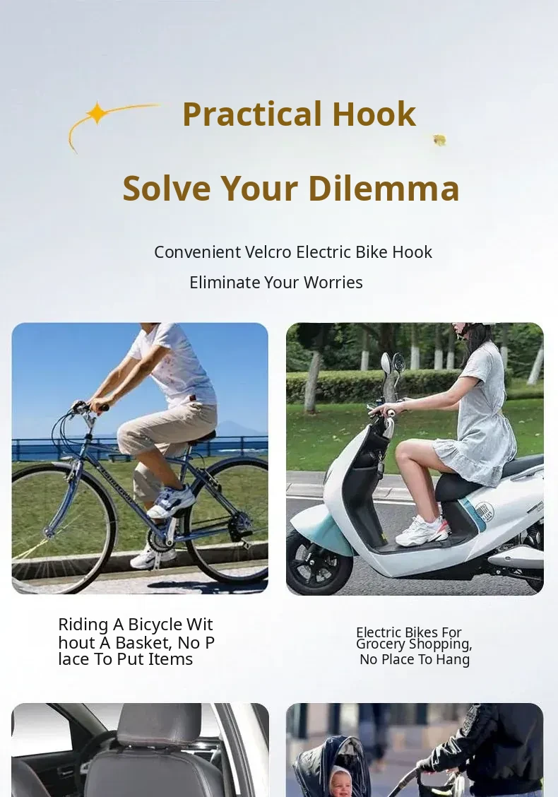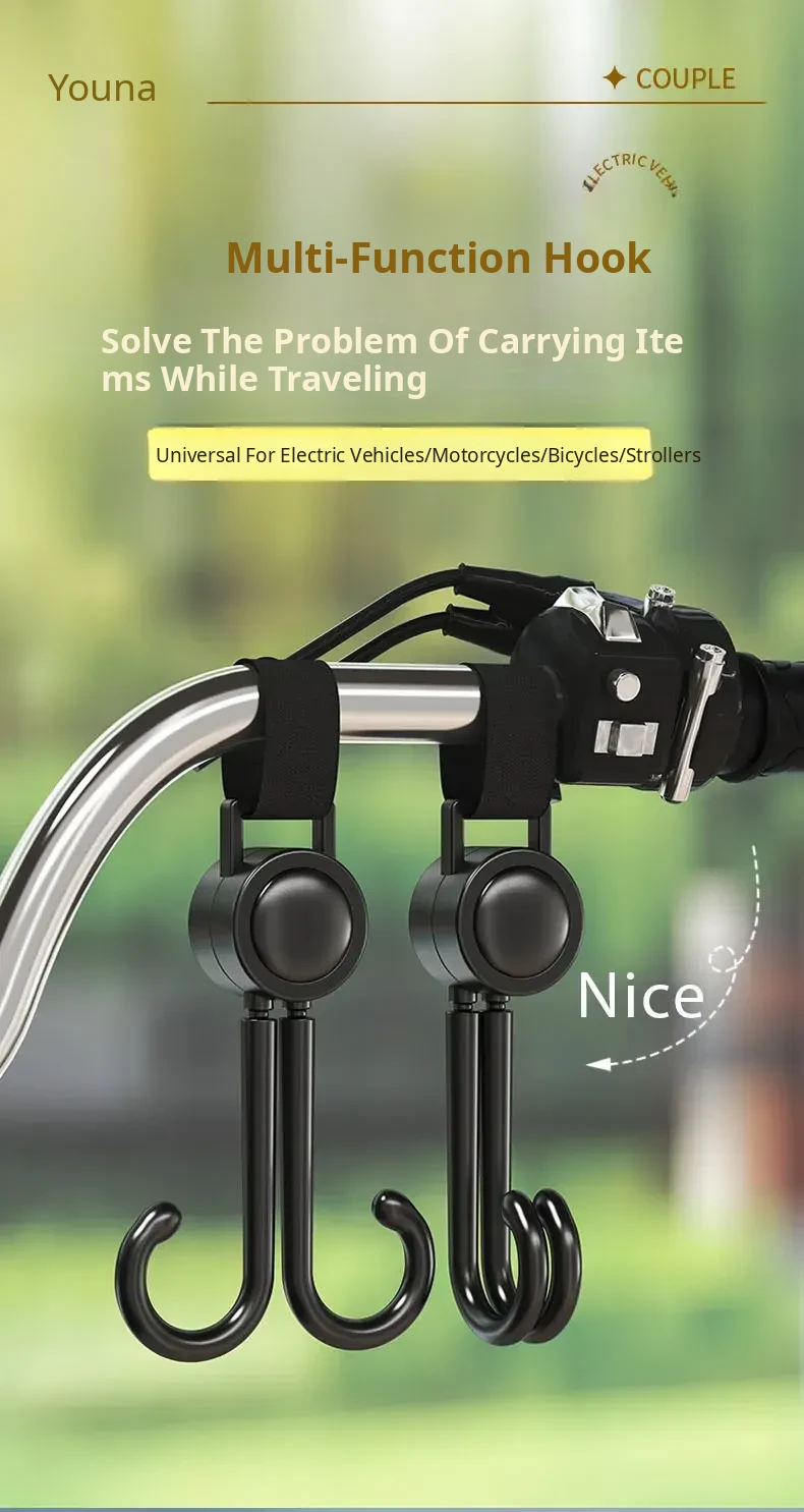 Universal Front Hook for Electric Bikes - No Drilling Required, Perfect for Securing Baby Gear, Bags, Helmets, and Heavy Items on Electric Scooters and Motorcycles.