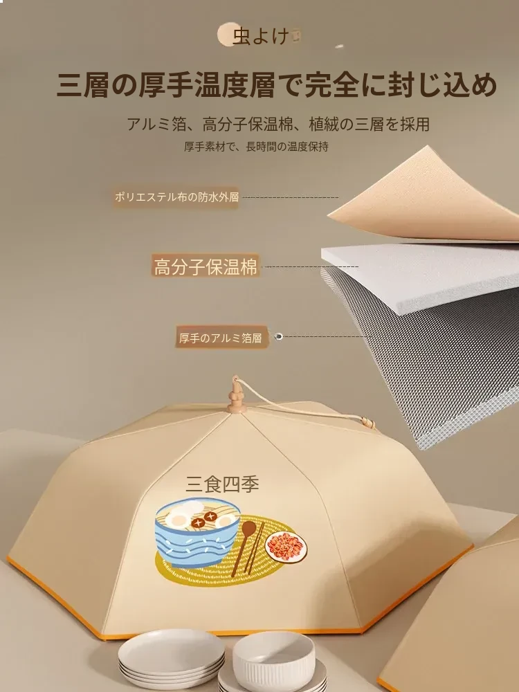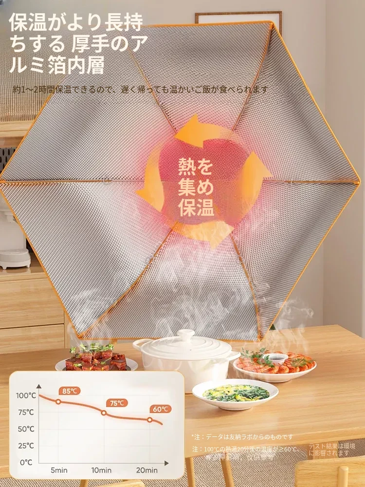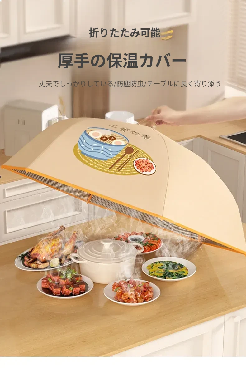 2025年新作!折りたたみ式保温食材カバー - 冬の食事を温かく保つ、家庭用テーブルに最適な残り物カバー!美味しさを逃さない、便利でスタイリッシュなキッチン必需品!