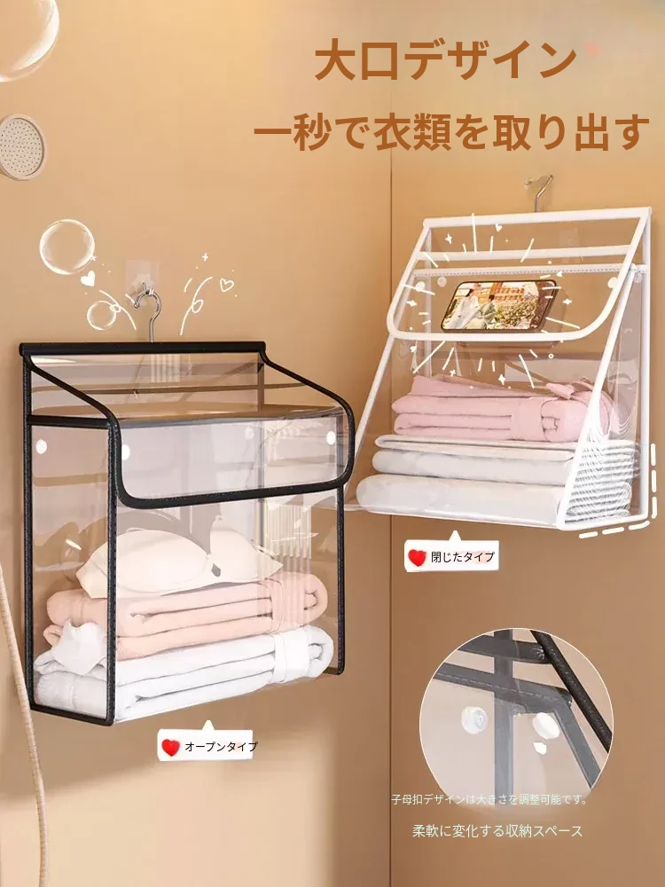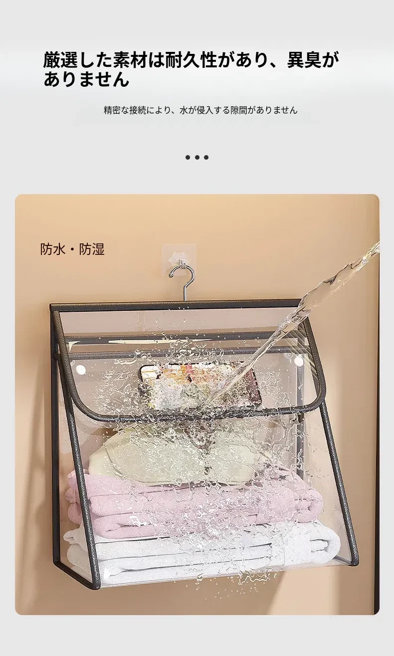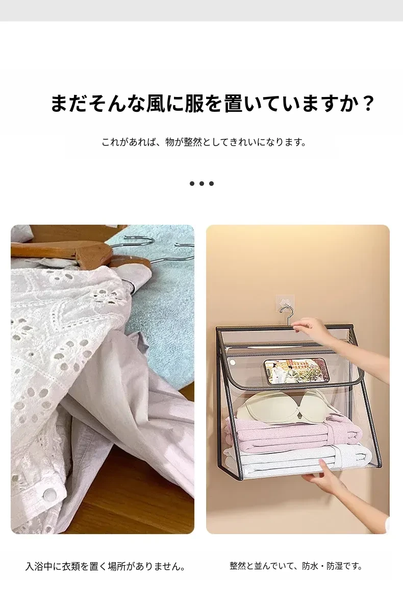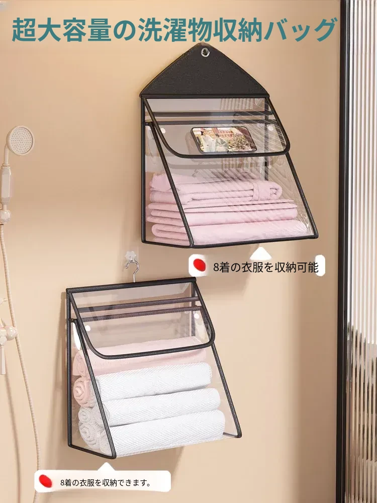 「洗濯物をスッキリ収納!おしゃれな壁掛けタイプのバスルーム用ランドリーバスケット - 清潔感あふれる洗面所に最適!使いやすいデザインで、入れ替えも簡単!」
