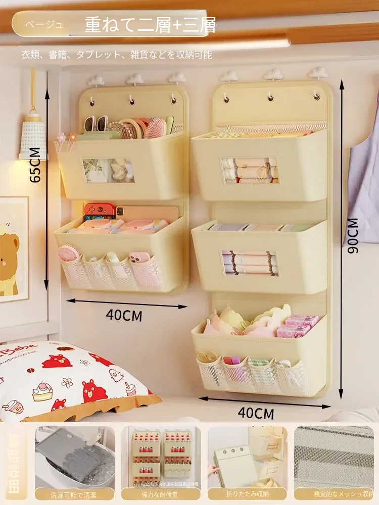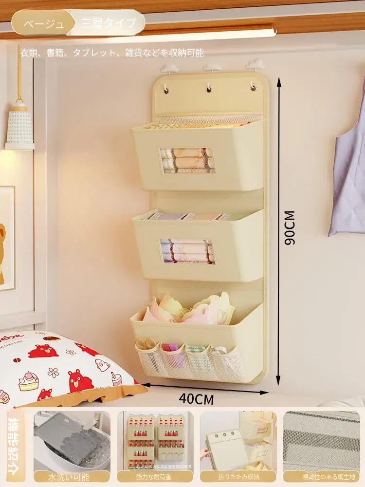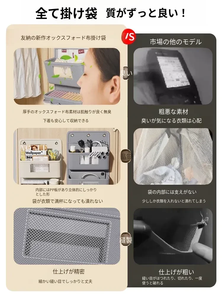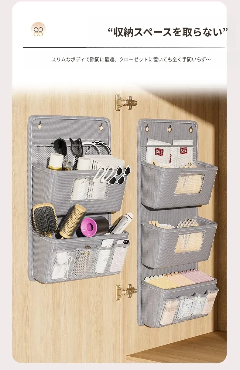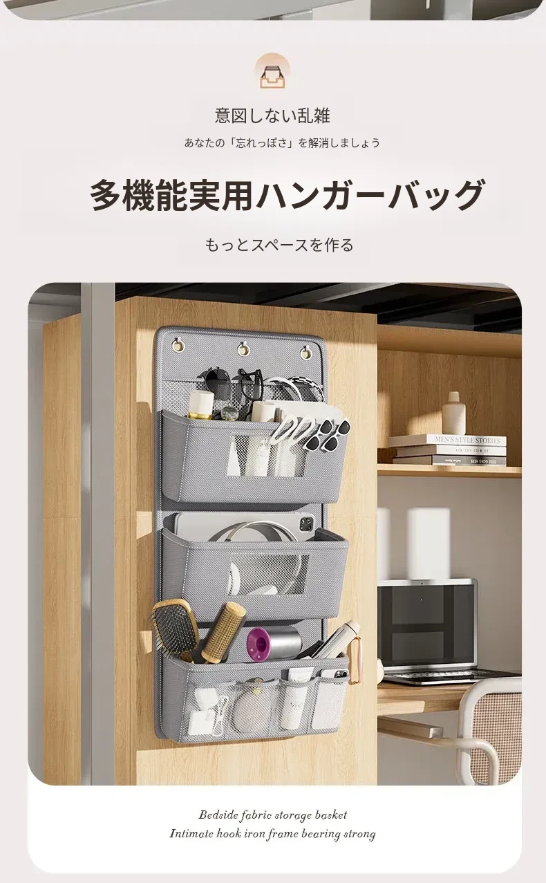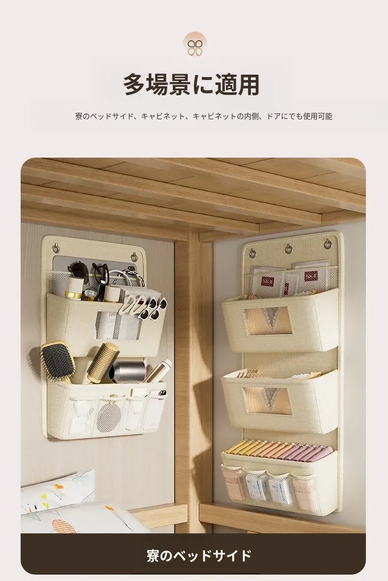 学生寮必備!収納力抜群のハンギング収納バッグ - ベッド上やクローゼットに最適、下着や靴下を整理整頓!ドアの裏に掛けられる便利なネットポケットで、スペースを有効活用!