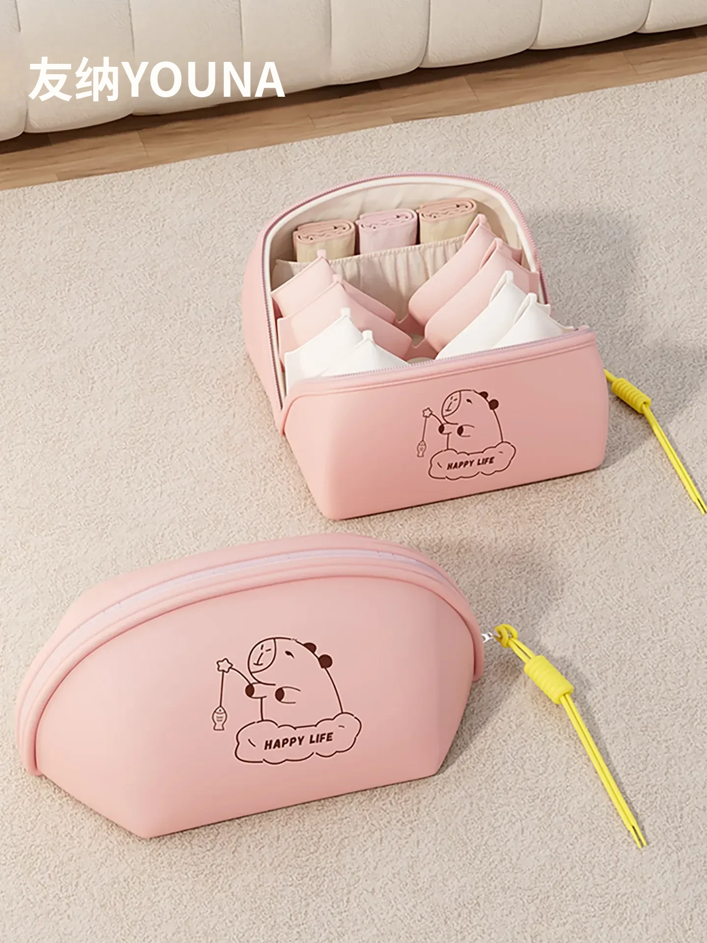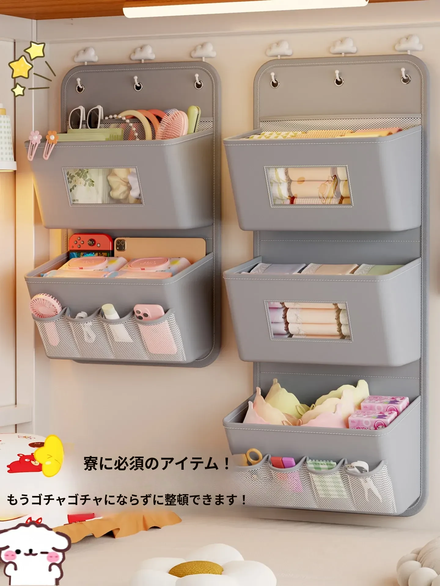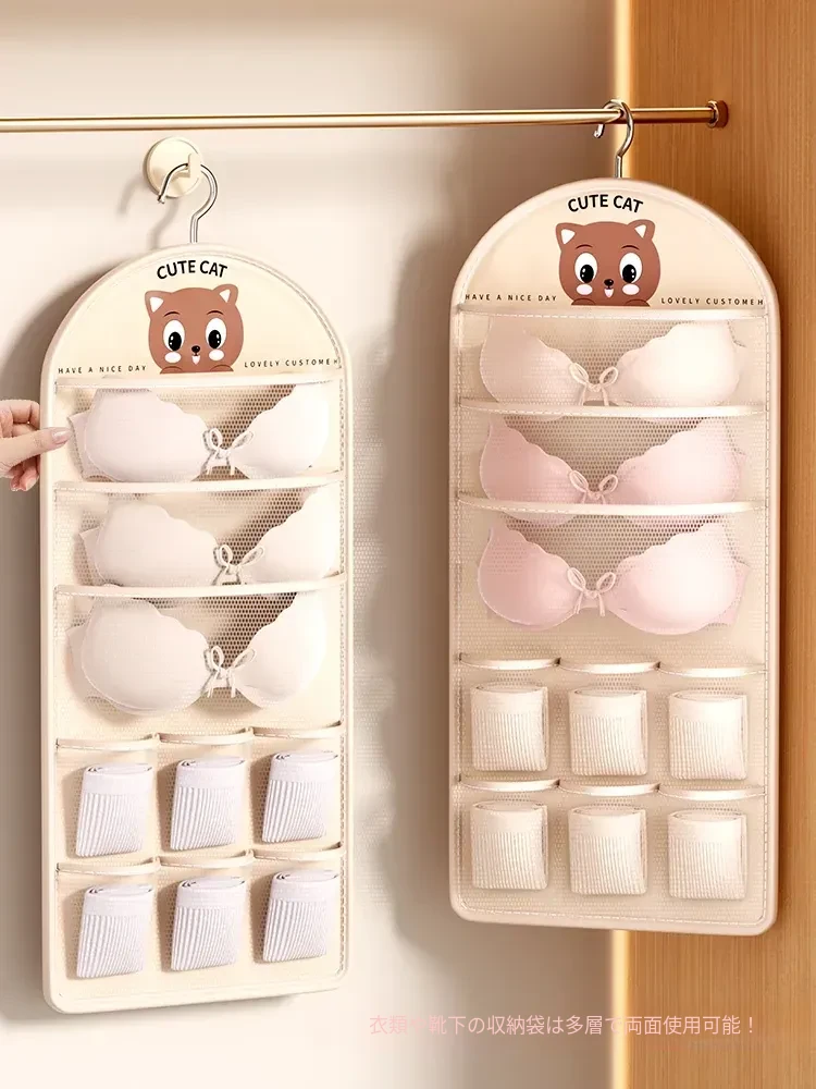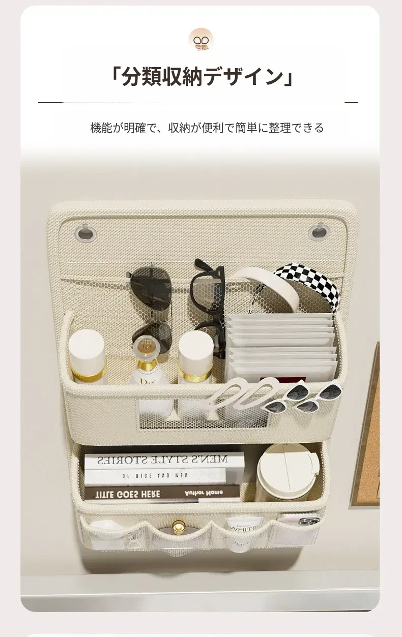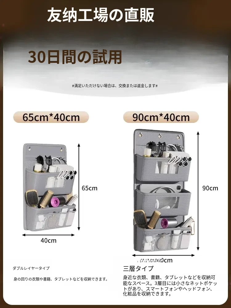 学生寮必備!収納力抜群のハンギング収納バッグ - ベッド上やクローゼットに最適、下着や靴下を整理整頓!ドアの裏に掛けられる便利なネットポケットで、スペースを有効活用!