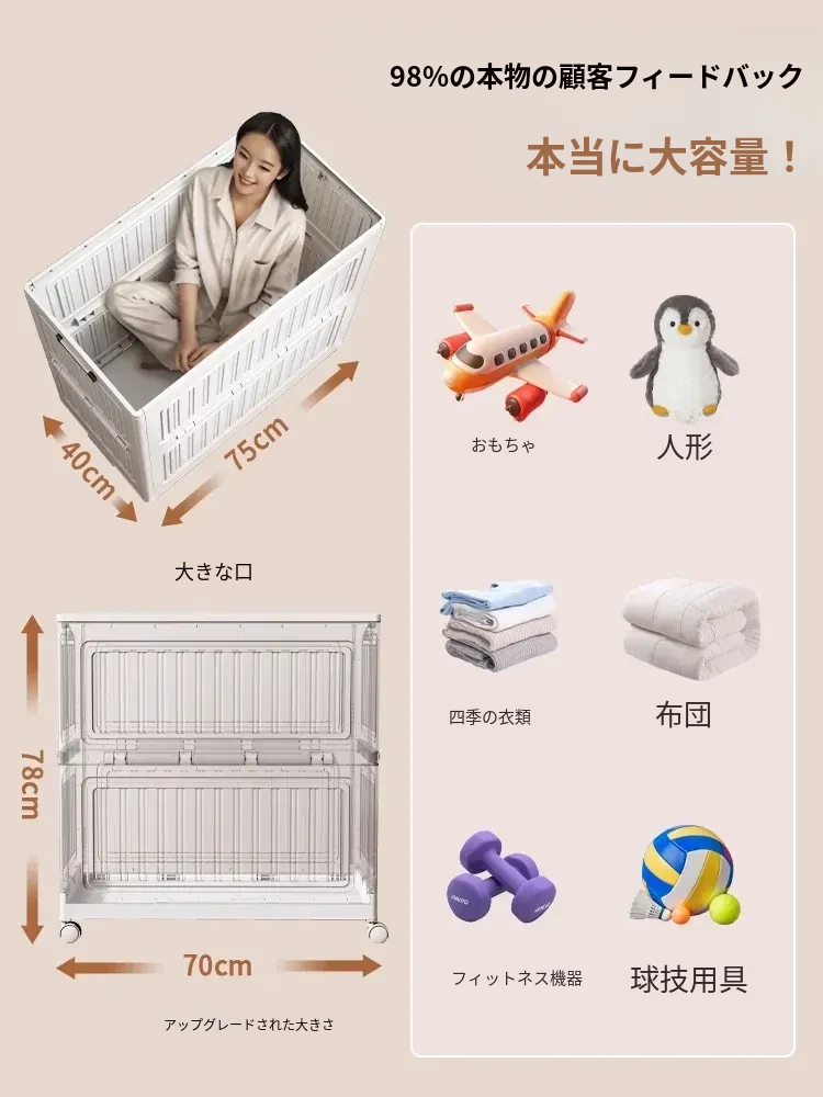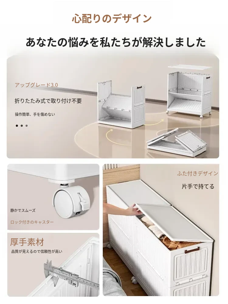 2個入り⭐【超大サイズ】フタ付きデザイン/折りたたみ収納/キャスター付き