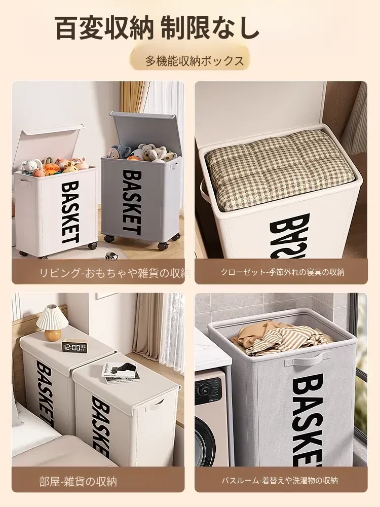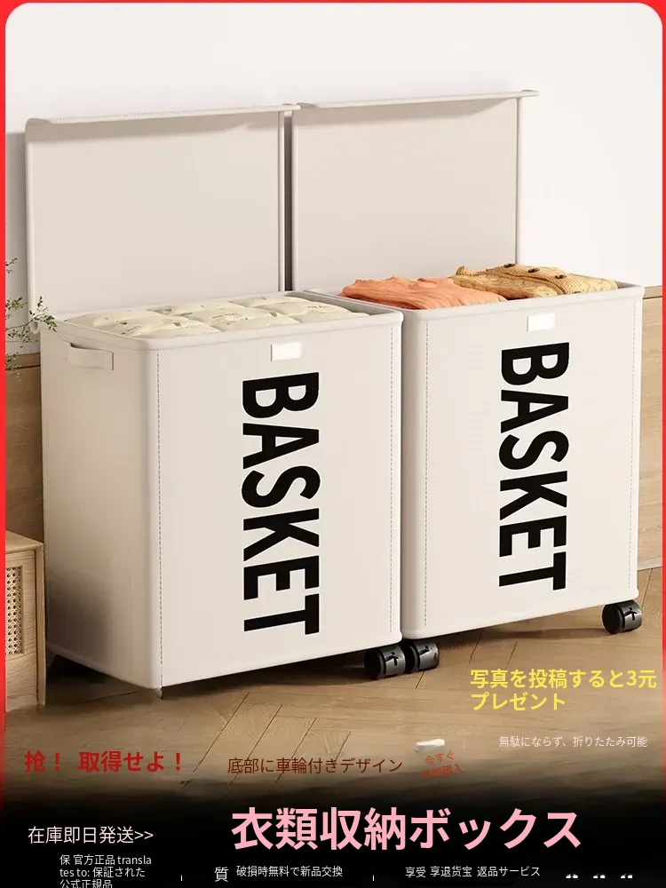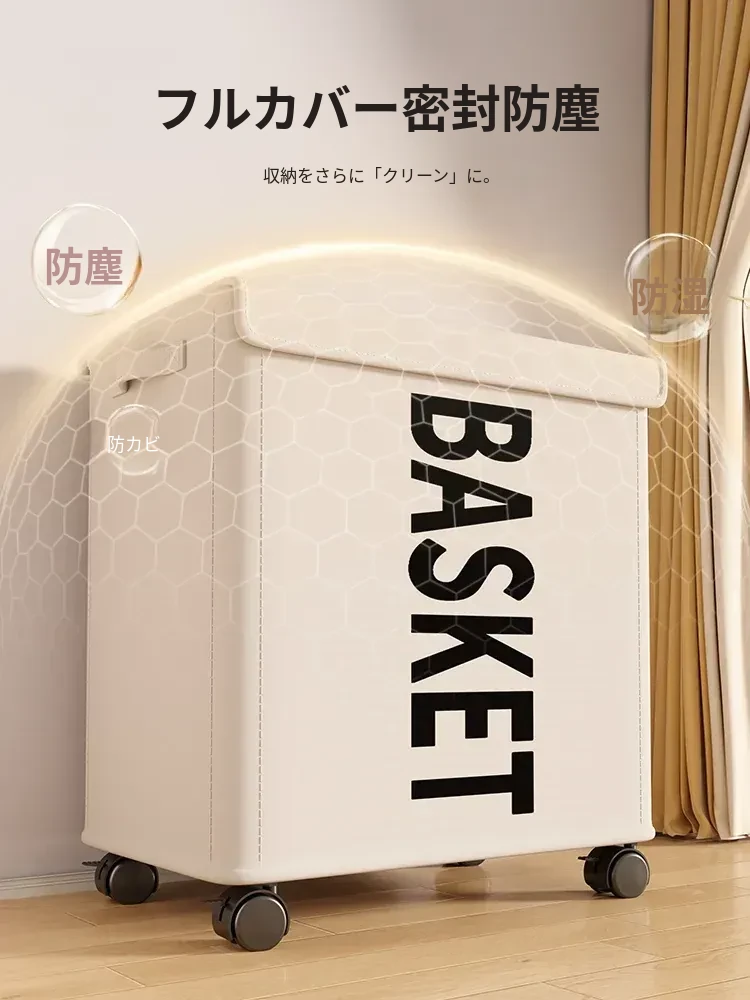 蓋付き特大号✅アイボリーホワイト【360度回転キャスター丨超大容量丨太型スチールフレーム】