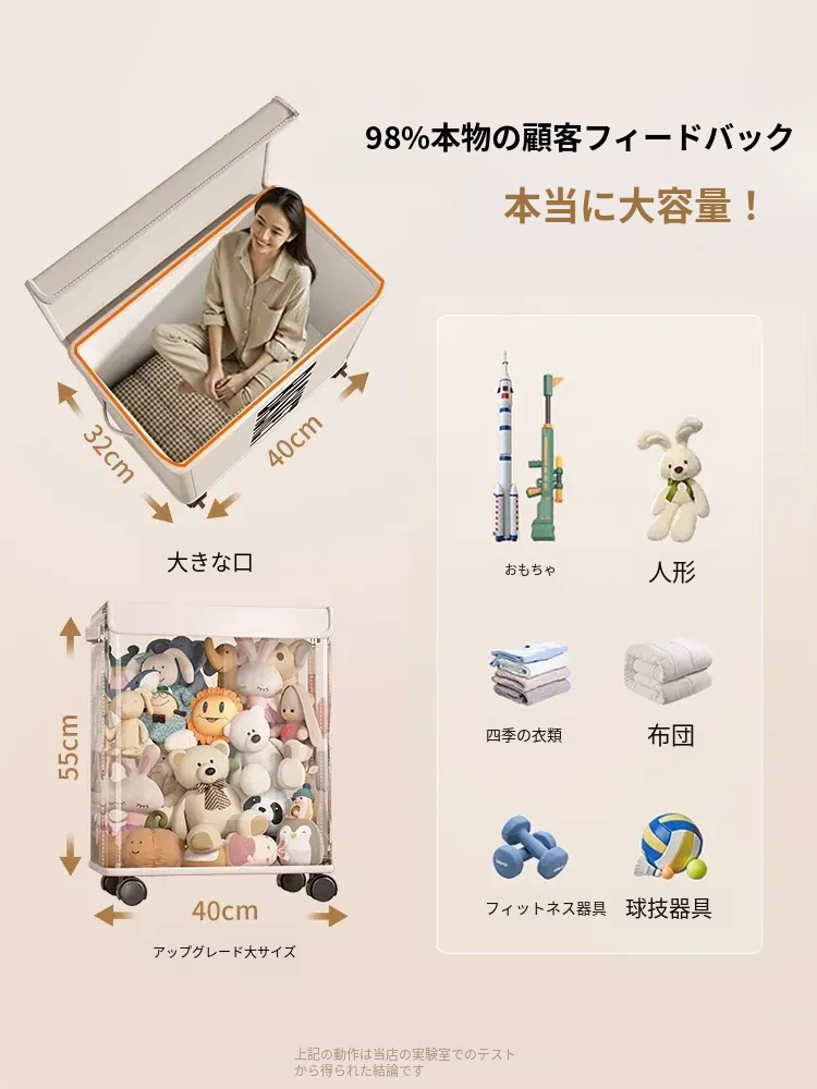 蓋付き大号✅アイボリーホワイト【360度回転キャスター丨超大容量丨太型スチールフレーム】