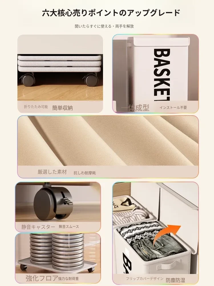 蓋なし特大号⭐アイボリーホワイト【360度回転キャスター丨超大容量丨太型スチールフレーム】
