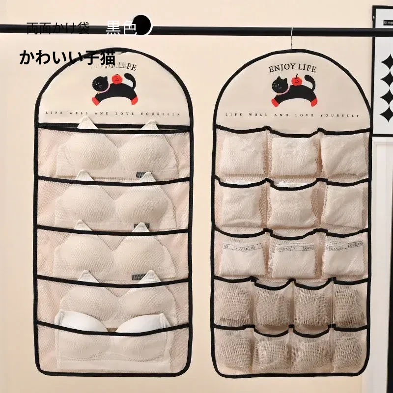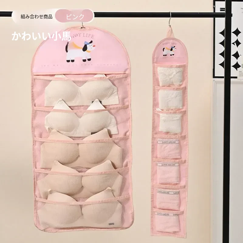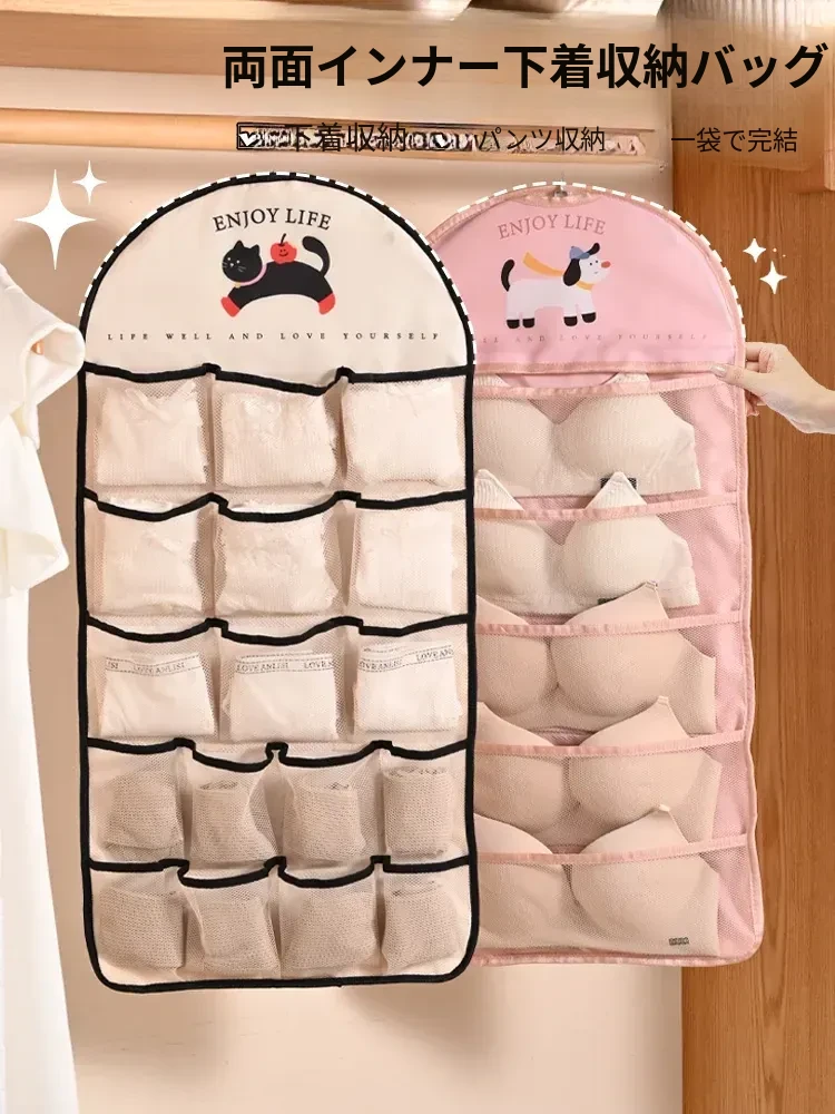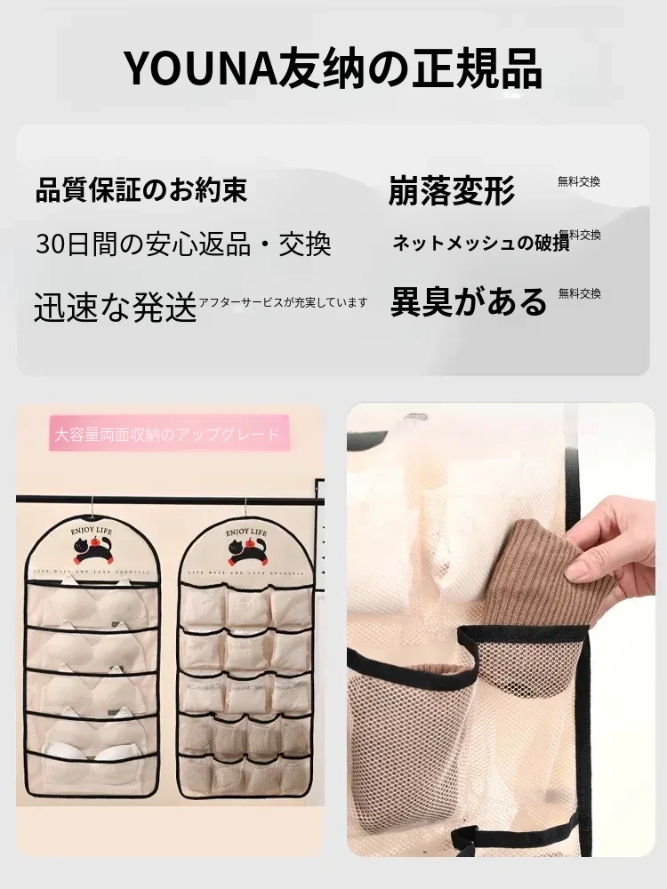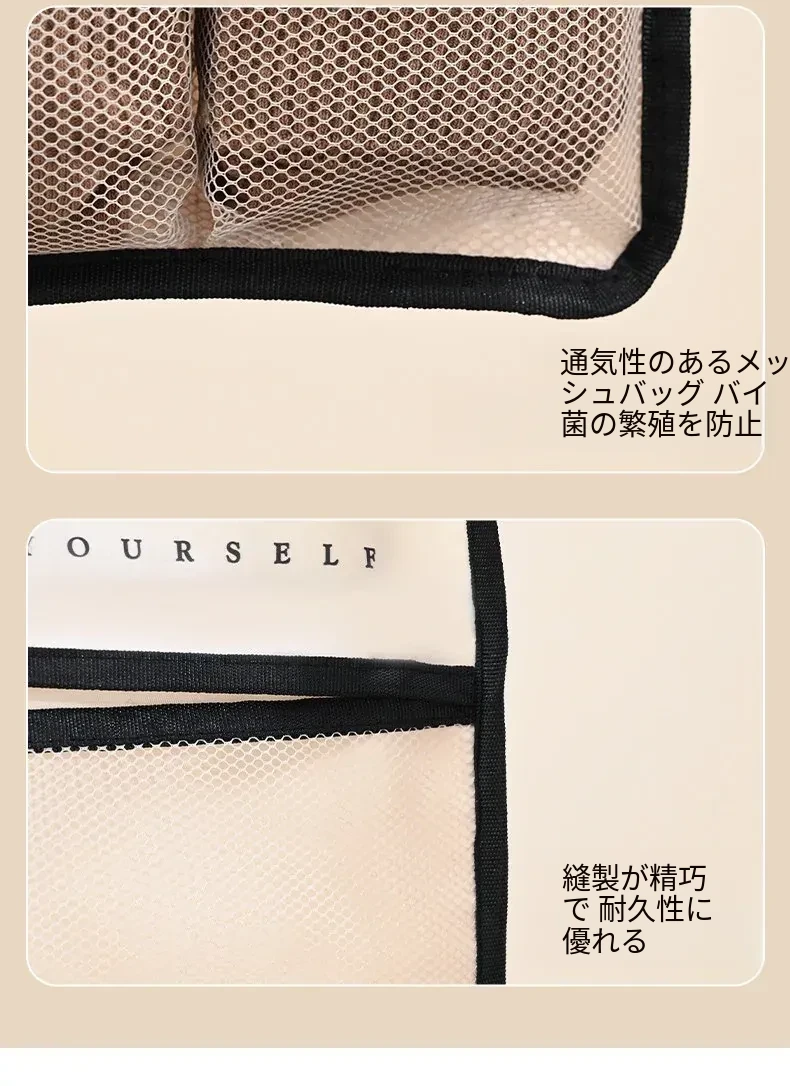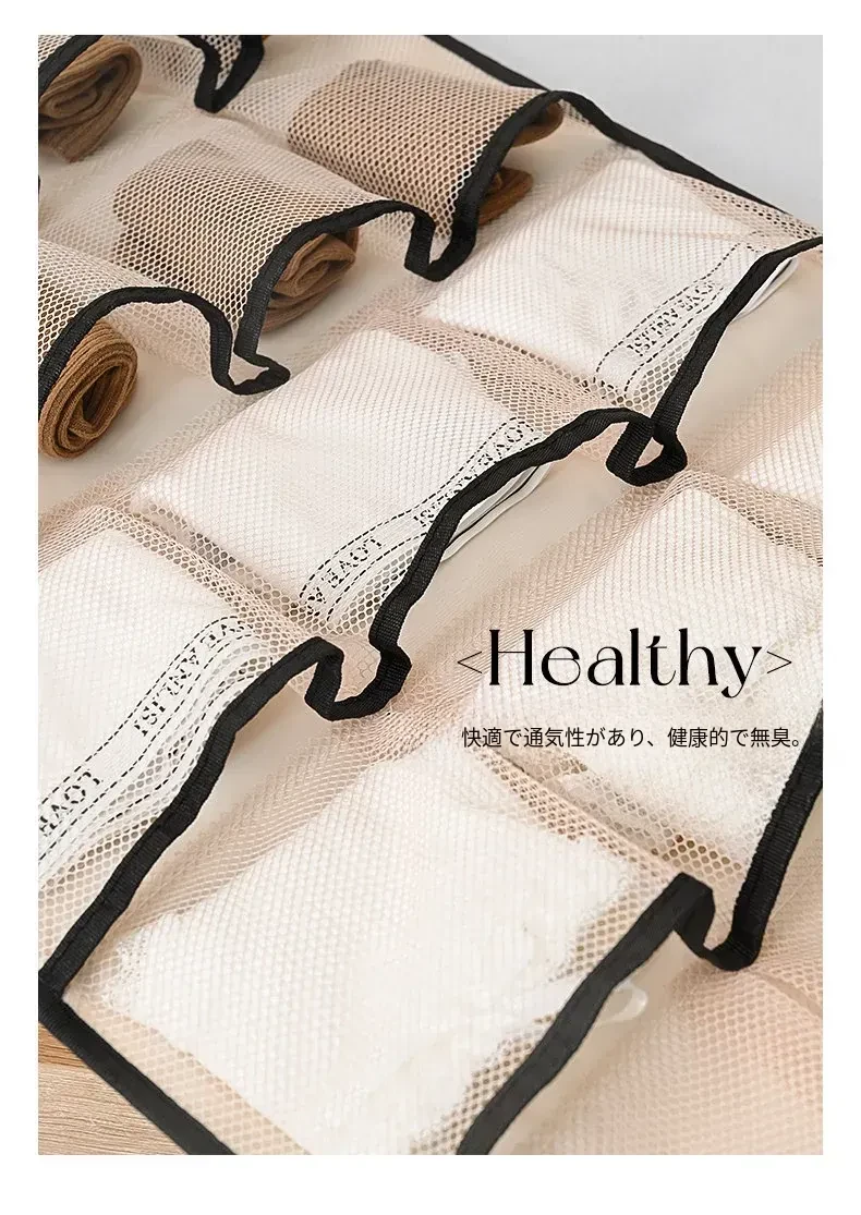 インナーウェア・ソックス収納ハンガーバッグ!クローゼットやドアの裏にぴったりのネットポケットで、下着をすっきり整理。寮生活や狭いスペースに最適な収納アイテム!
