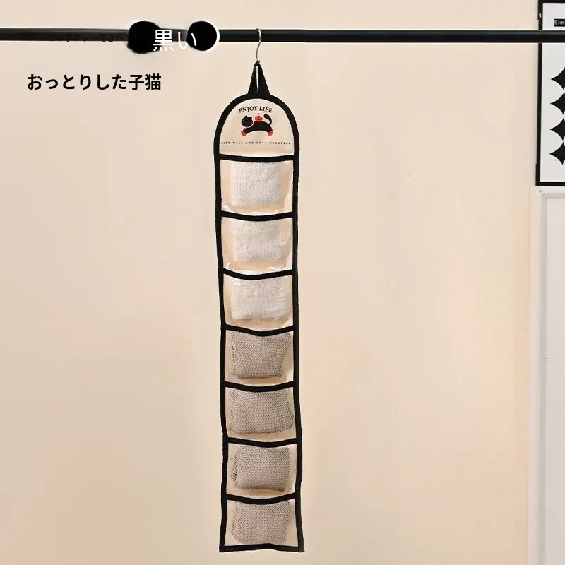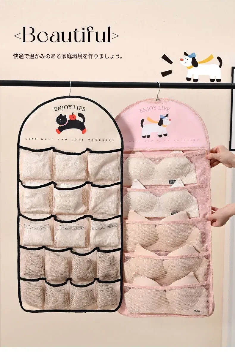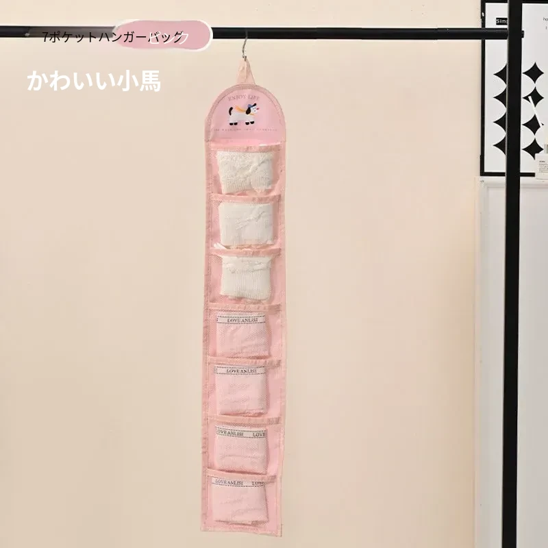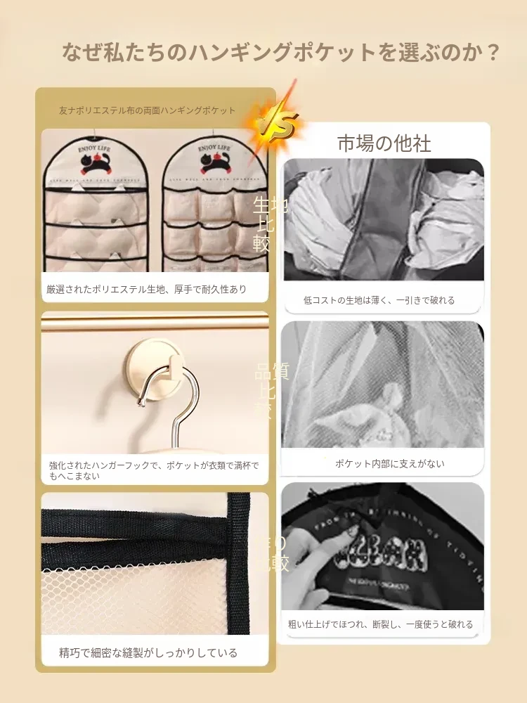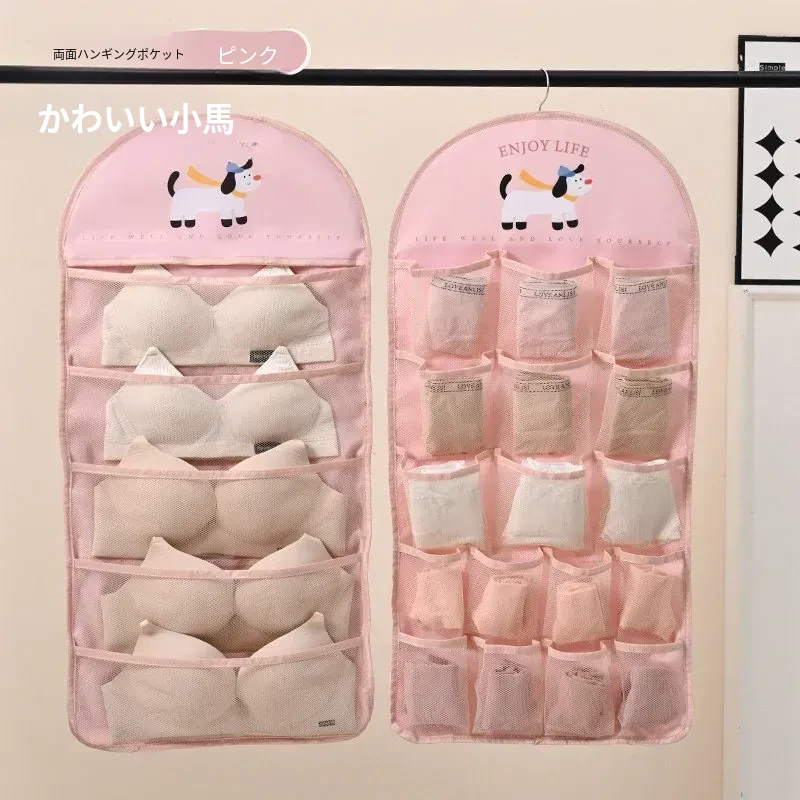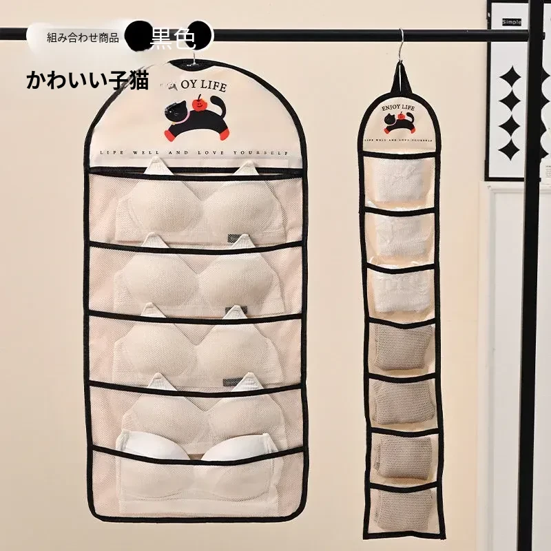 インナーウェア・ソックス収納ハンガーバッグ!クローゼットやドアの裏にぴったりのネットポケットで、下着をすっきり整理。寮生活や狭いスペースに最適な収納アイテム!