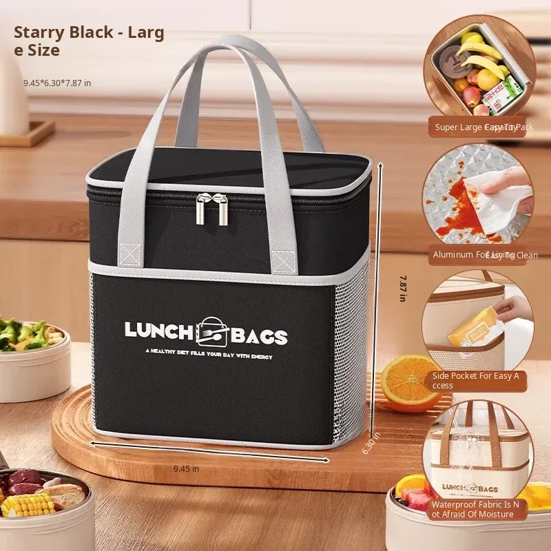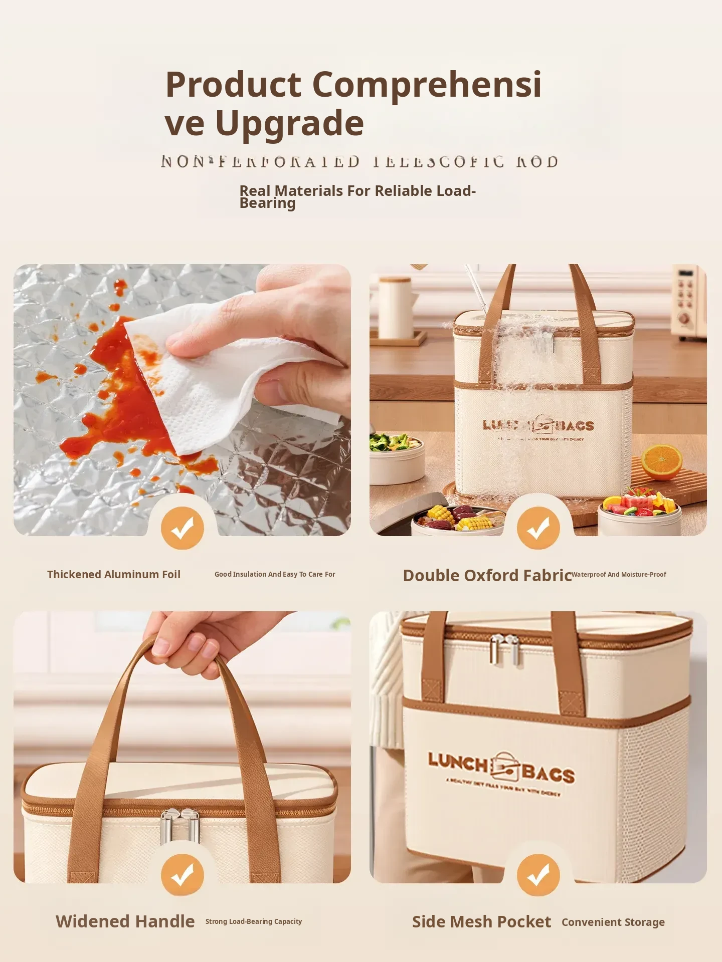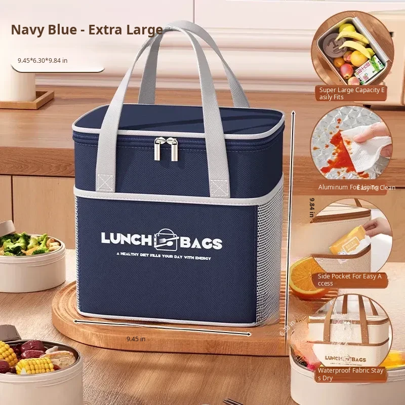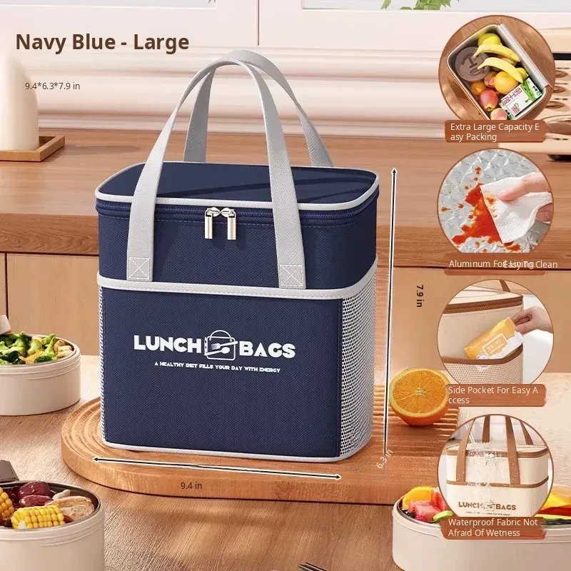 Large Capacity Insulated Lunch Bag - Thickened Aluminum Foil Bento Box Carrier for Office Workers and Students - Perfect for Meal Prep and On-the-Go Lunches