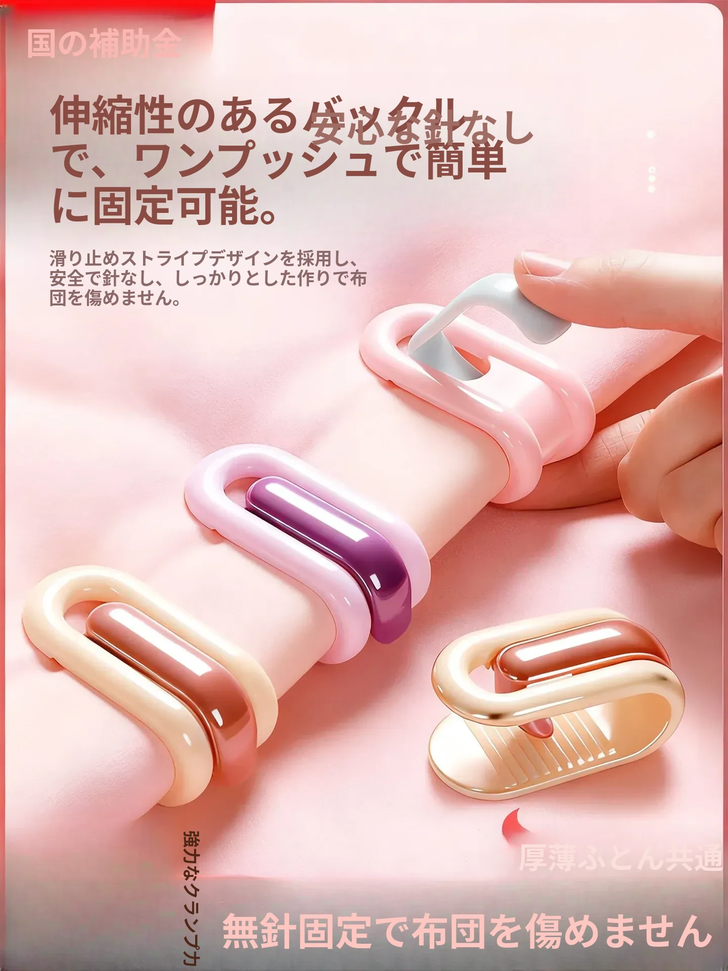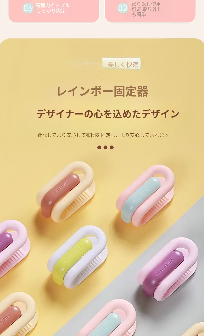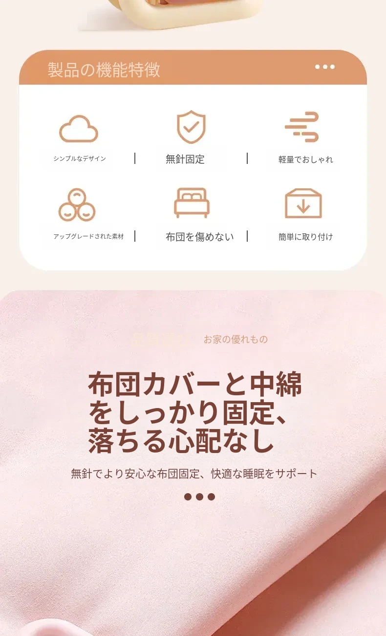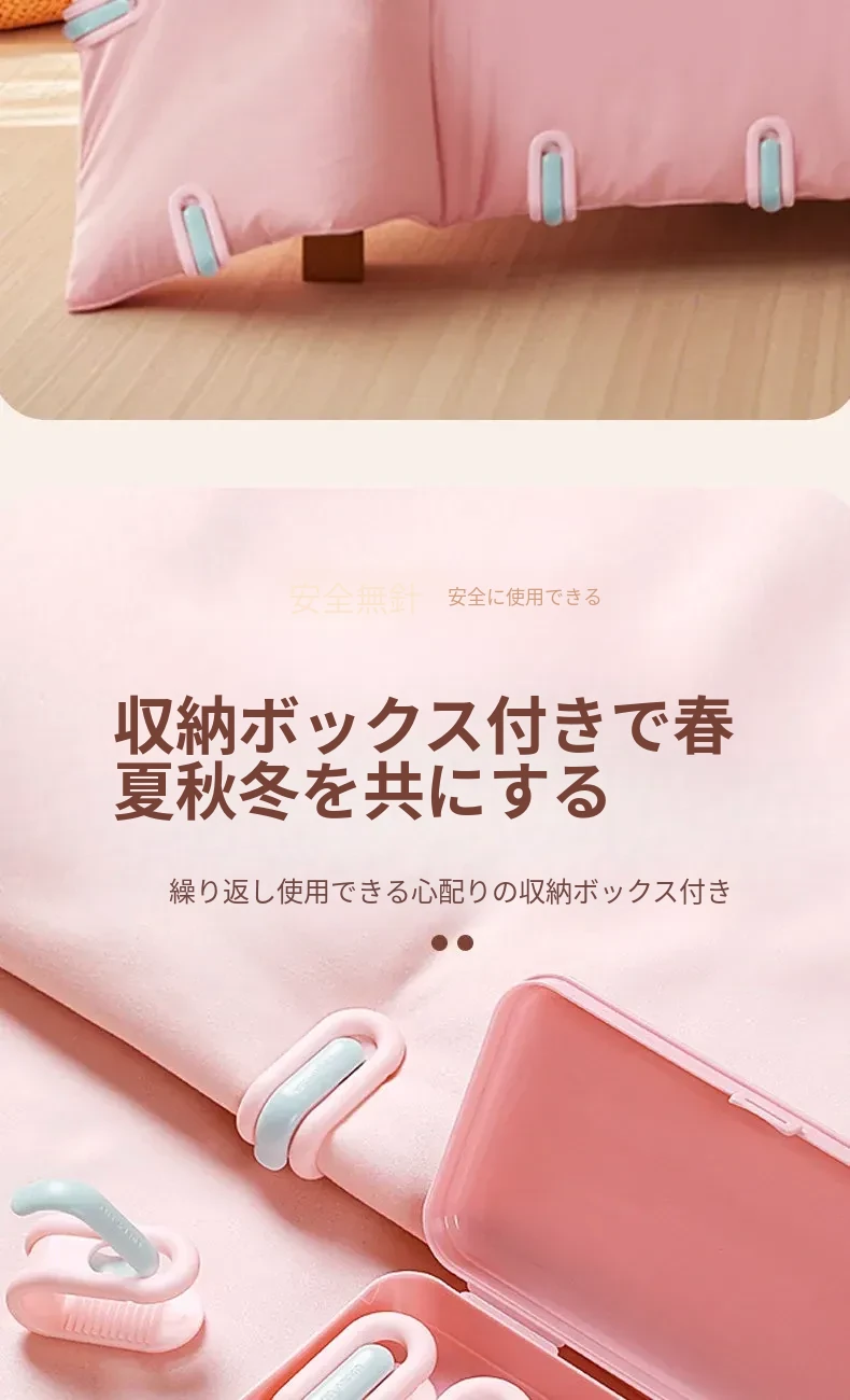 新型安全無針ベッドシーツ固定器!滑り止め機能付き、掛け布団やシーツをしっかり固定!無痕デザインでおしゃれなベッドルームを演出。快適な睡眠をサポートする必須アイテムです!