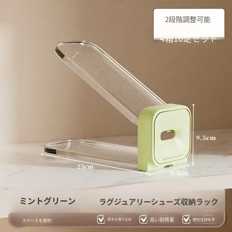 超お得✔4箱♐ミントグリーン【16個のラグジュアリー調整可能シューラック】