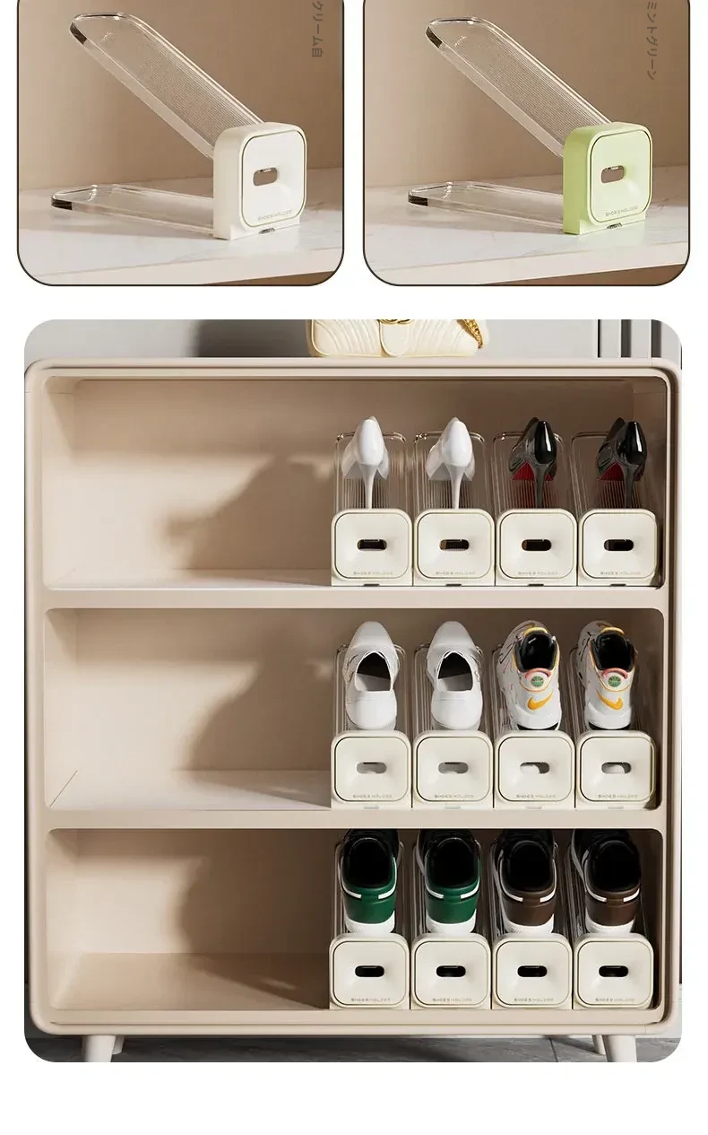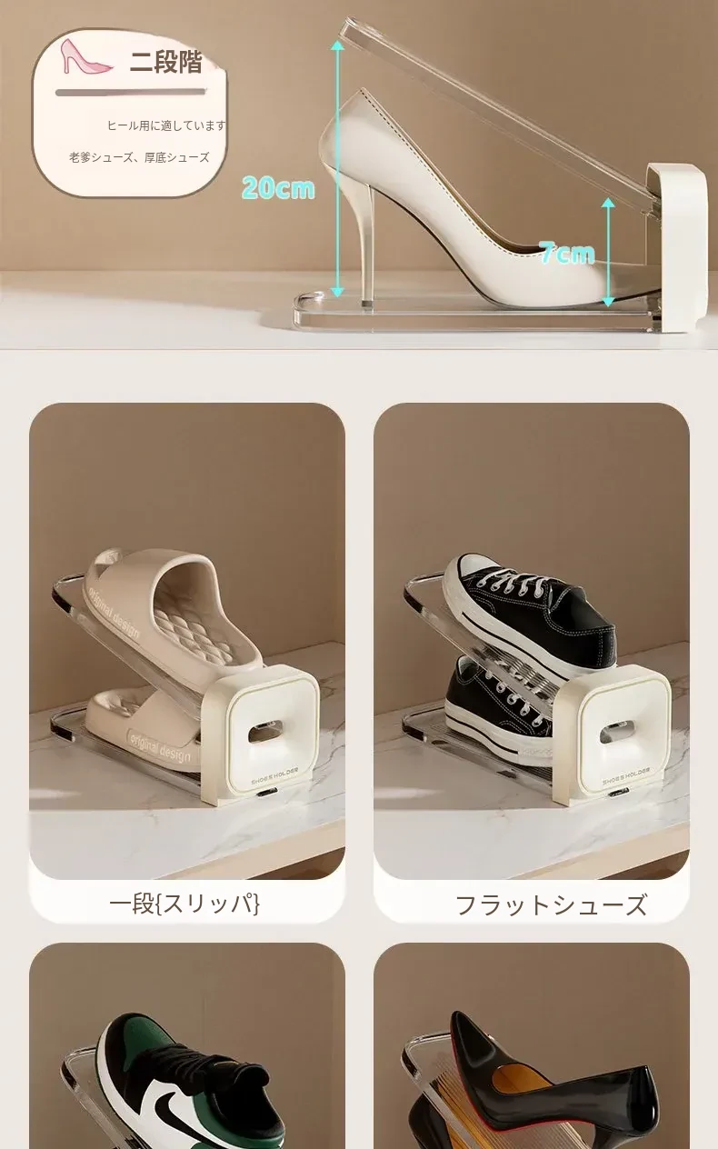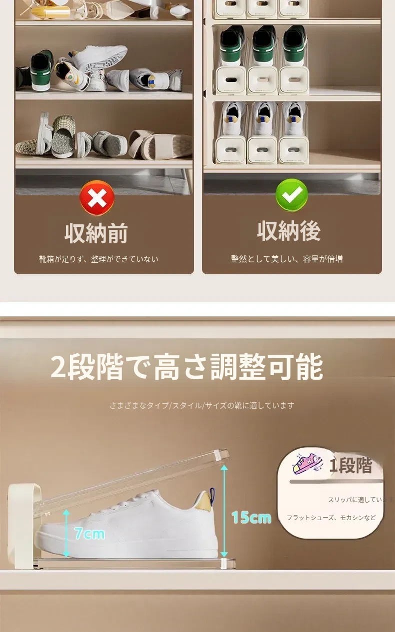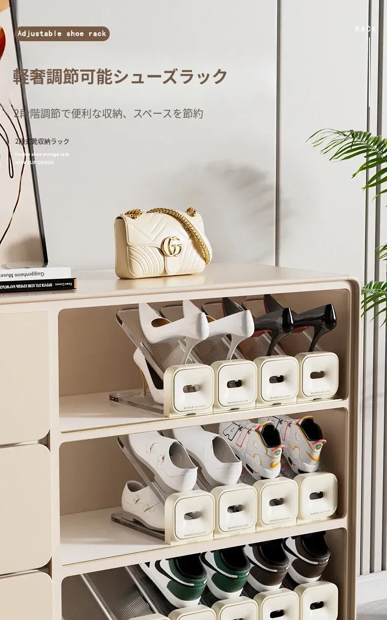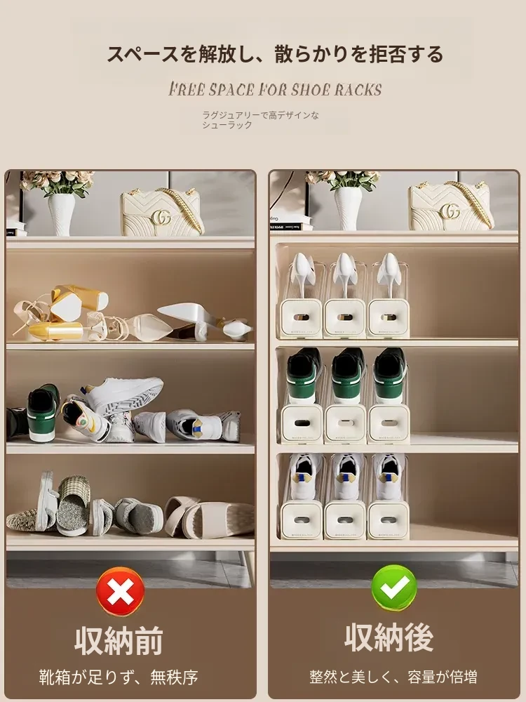 省スペース!二段式シューズラック・折りたたみ式透明シューズボックス・靴収納に最適な収納ボックスで、あなたの靴をスマートに整理!
