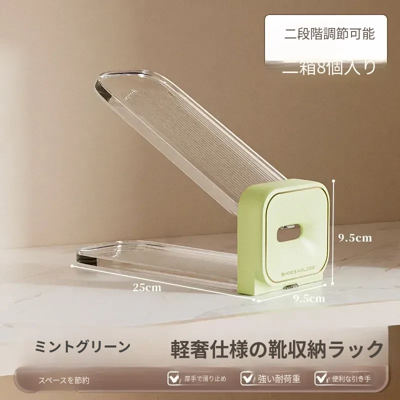 お得!2箱⭐ミントグリーン【8個のラグジュアリー調整可能シューラック】