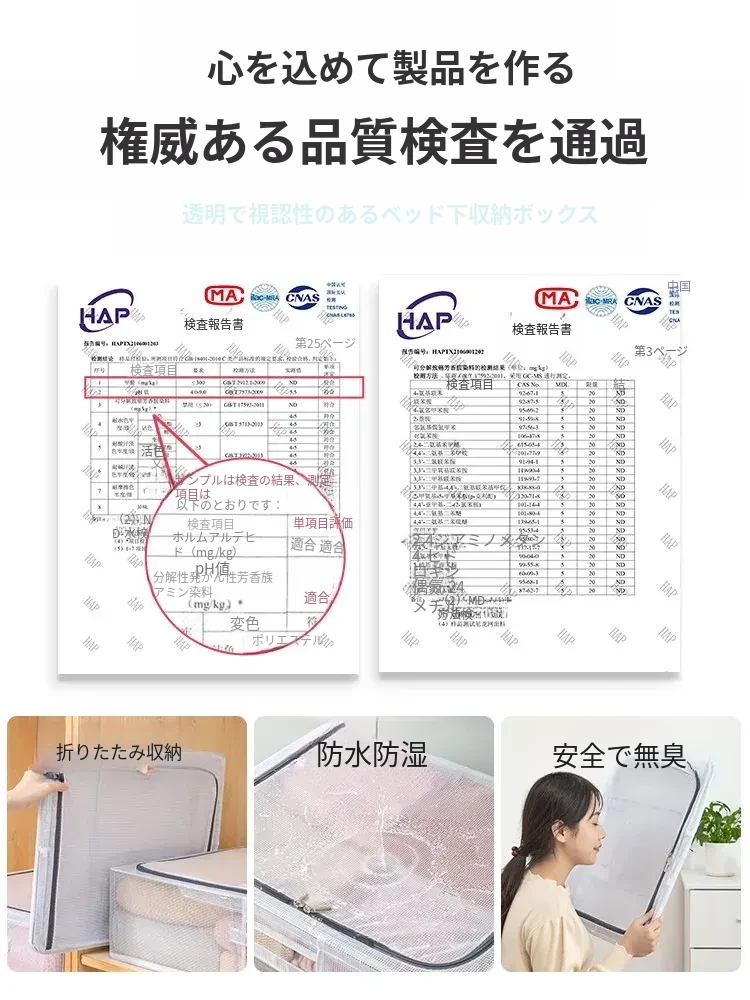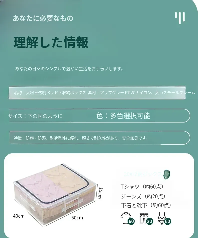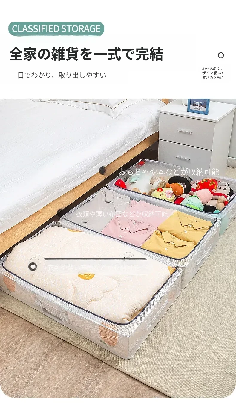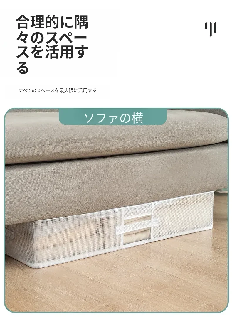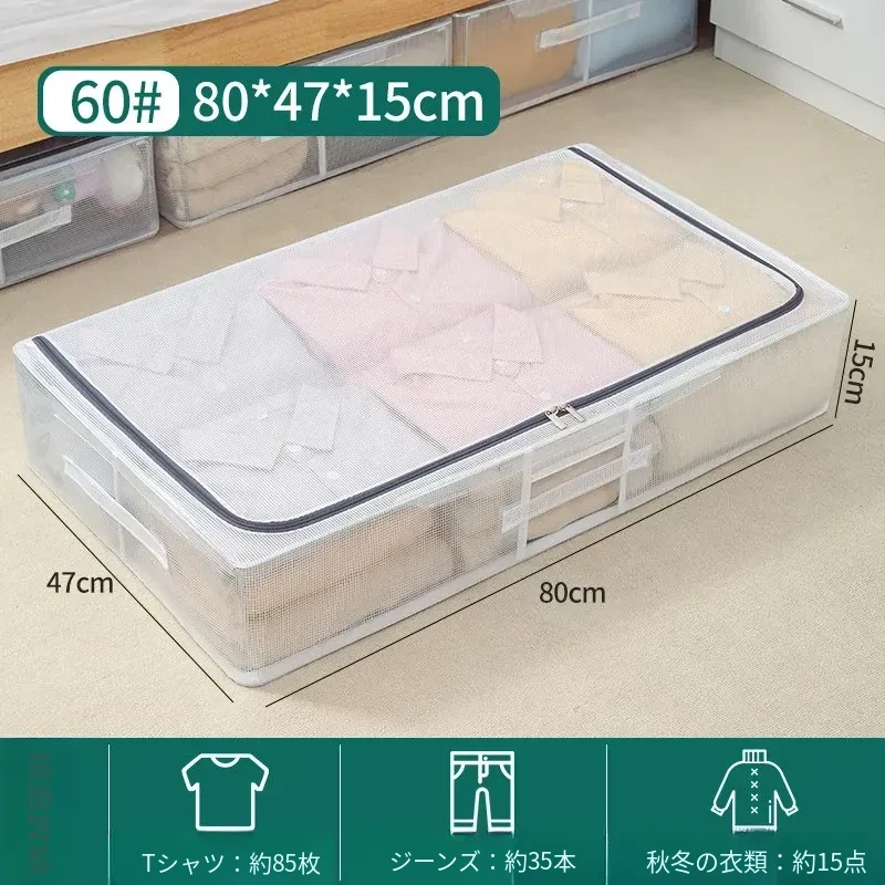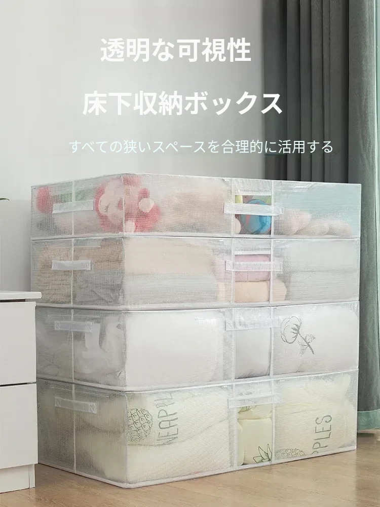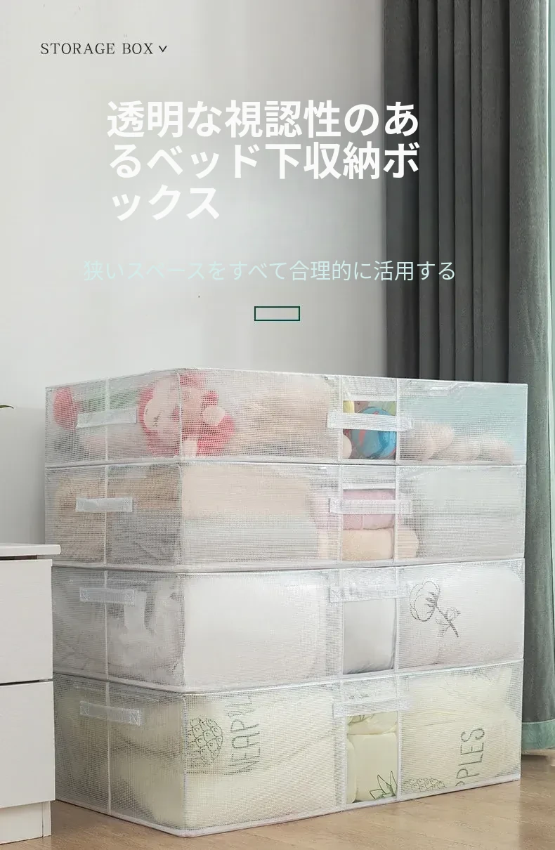 超薄収納ボックス!衣類や布団がスッキリ片付く、透明で見やすいベッド下整理ボックス。省スペースでお部屋をスッキリ!おしゃれなデザインで、使いやすさ抜群の収納アイテムです。