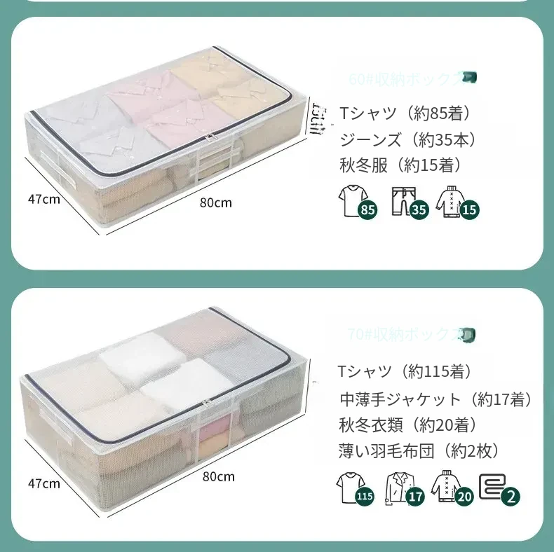 PVCタイプベッド下収納ボックス-60#【80*47*15cm】