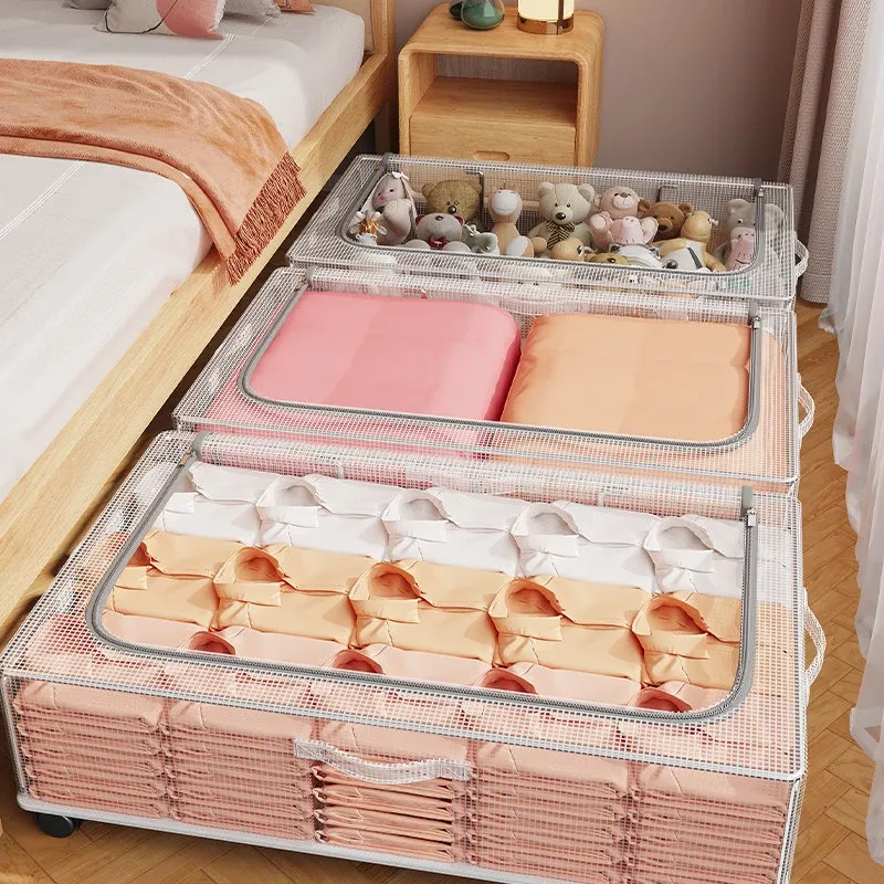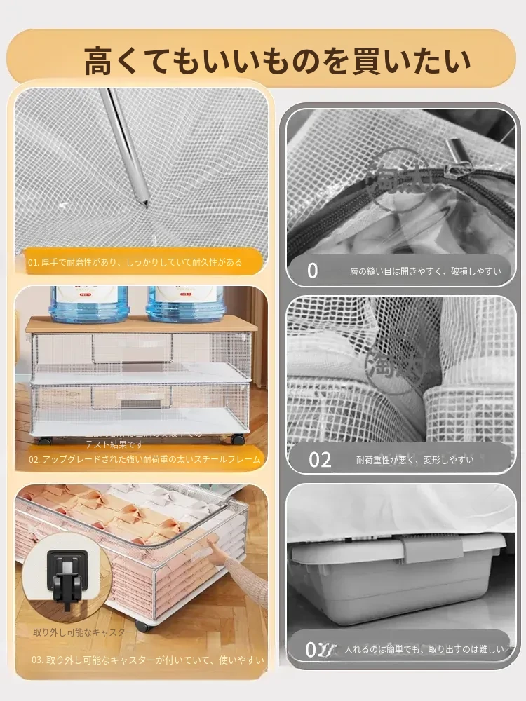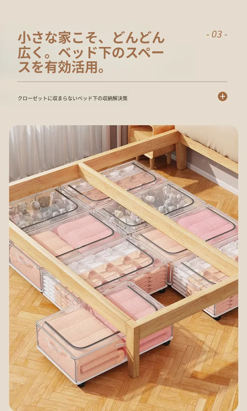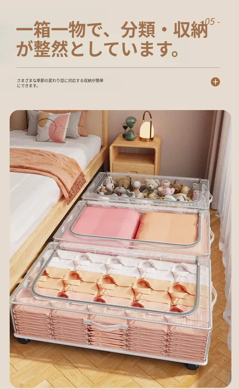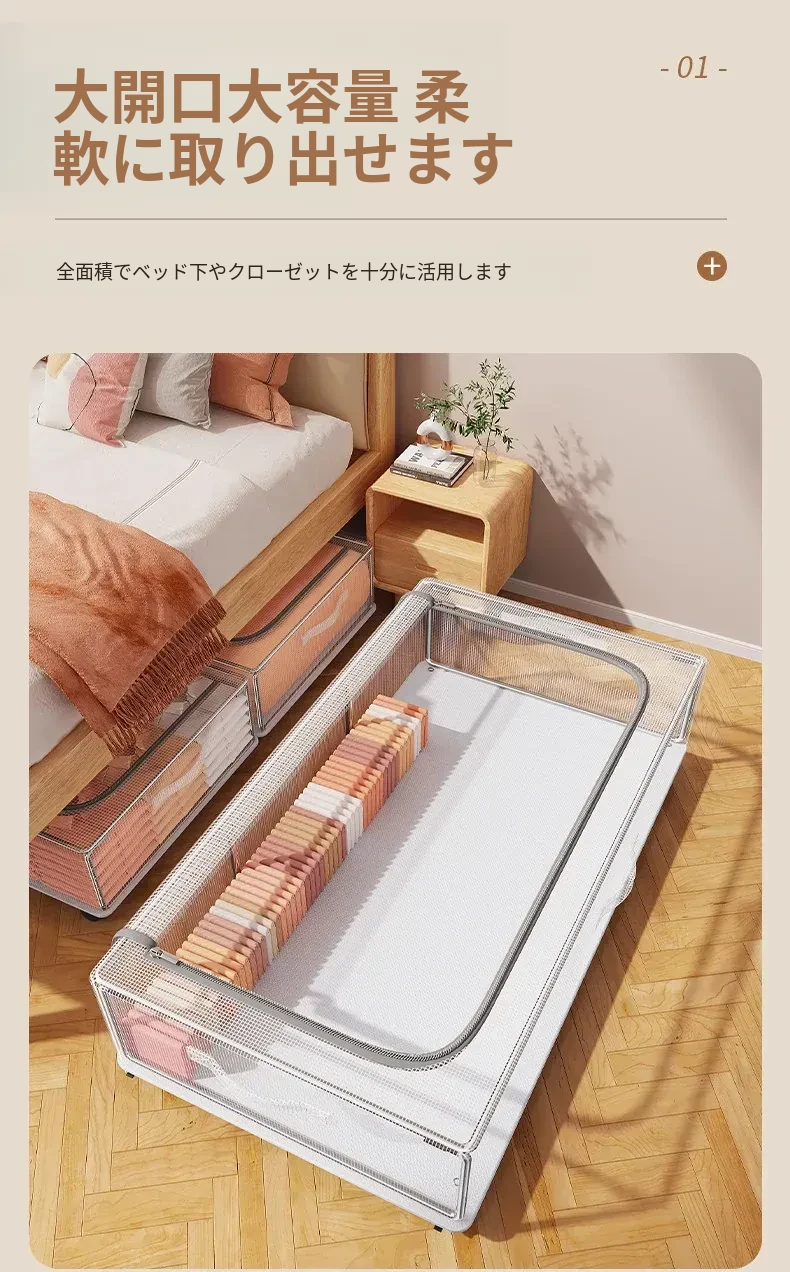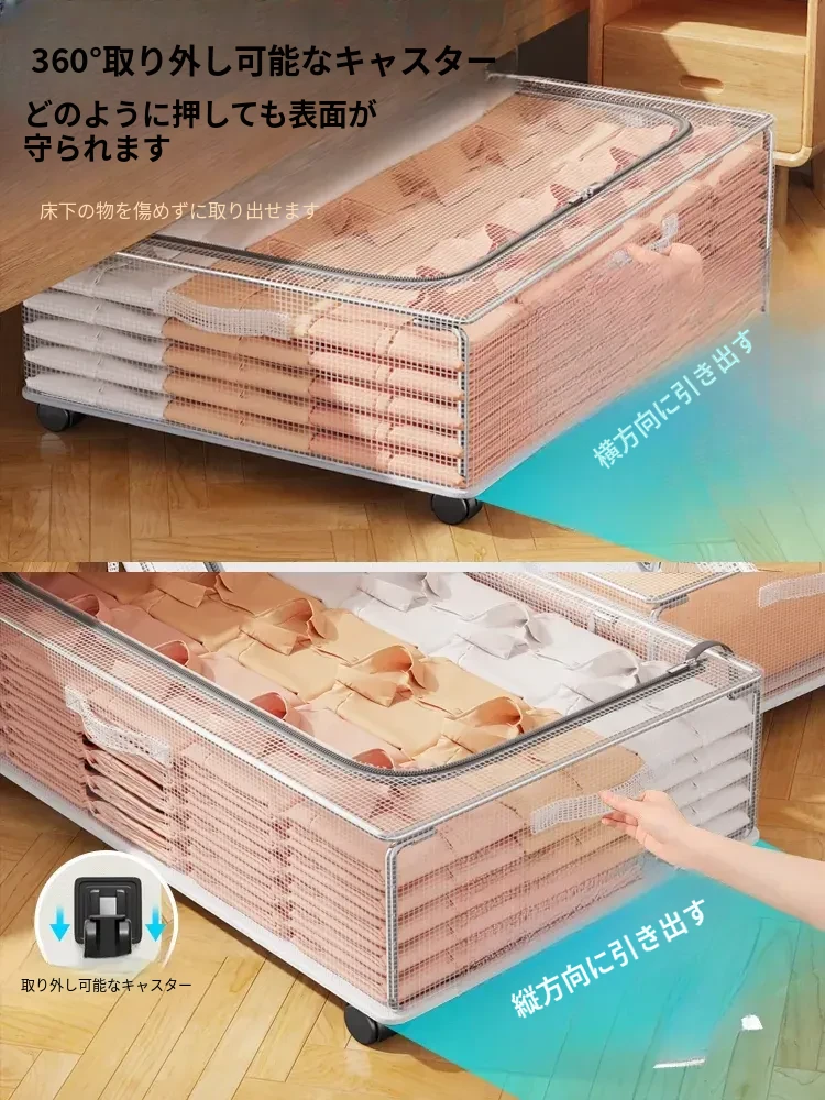 ベッド下収納ボックス 大容量 掛け布団・衣類収納袋 キャスター付き フラット整理ボックス 収納の必需品!お部屋をスッキリ片付けて、快適な空間を実現しましょう!