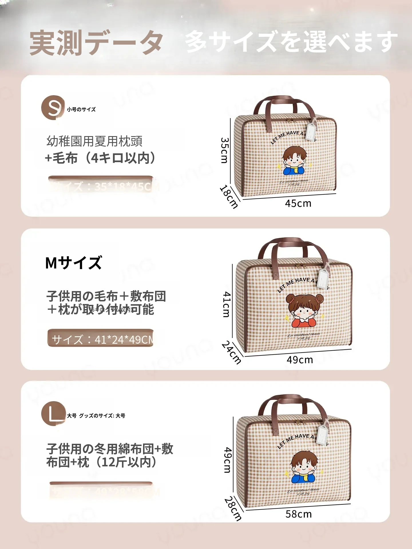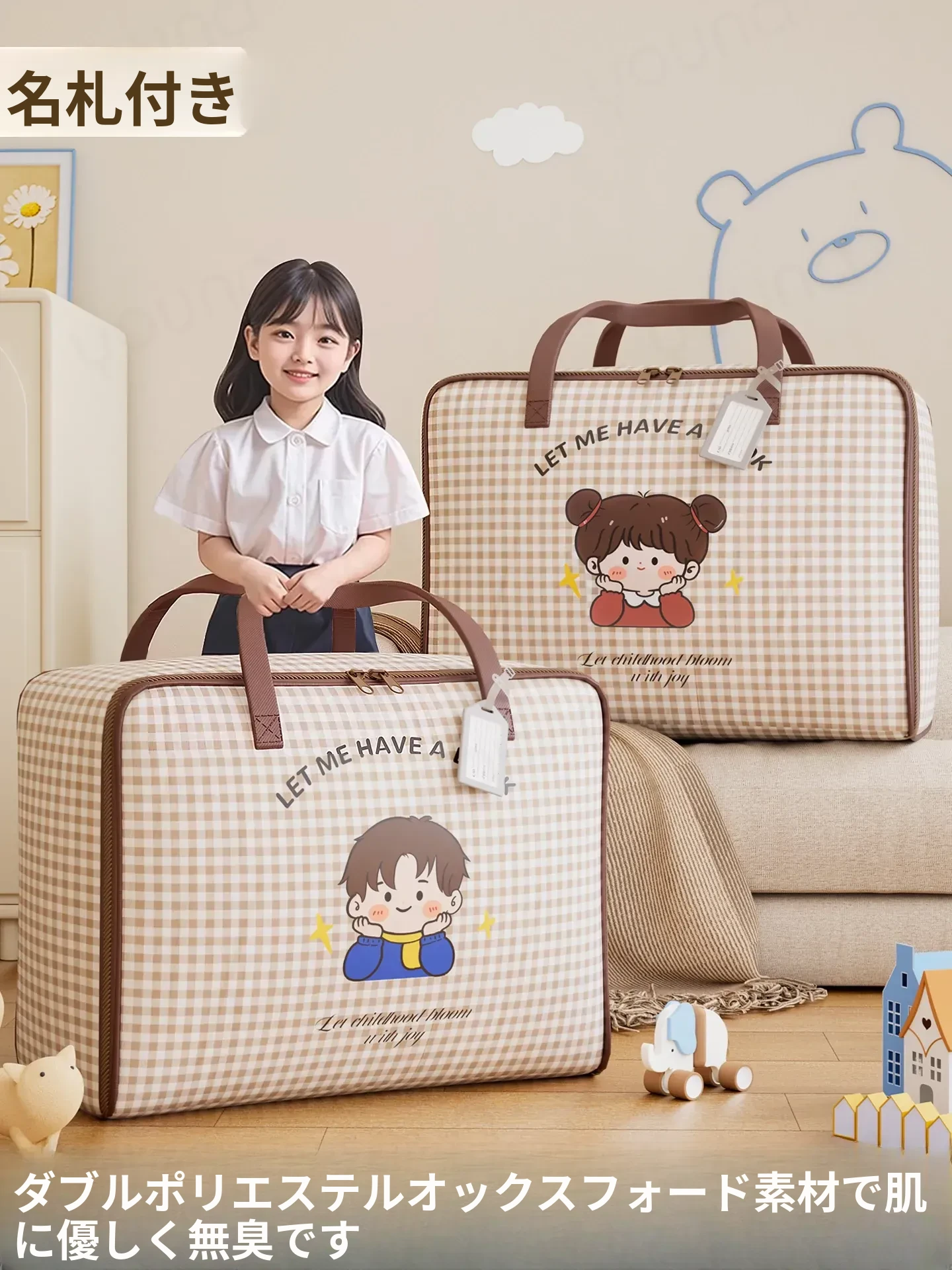幼稚園用防湿オックスフォード布収納バッグ - 子供服や布団を整理整頓!持ち運び便利で引っ越しにも最適!