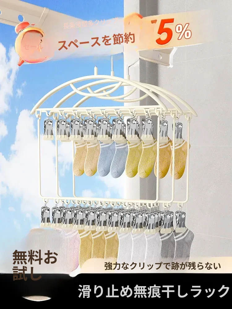 ステンレス製多機能クリップ干しラック - 靴下や下着をしっかり固定!家庭や寮、バルコニーに最適な風に強い便利アイテム!おしゃれで実用的な干し方で、洗濯がもっと楽しくなります!