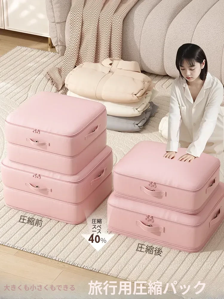 厚手衣類や布団もすっきり収納!真空圧縮バッグで家じゅうのスペースを最大限に活用。ダウンジャケットや毛布の整理に最適な必須アイテム!