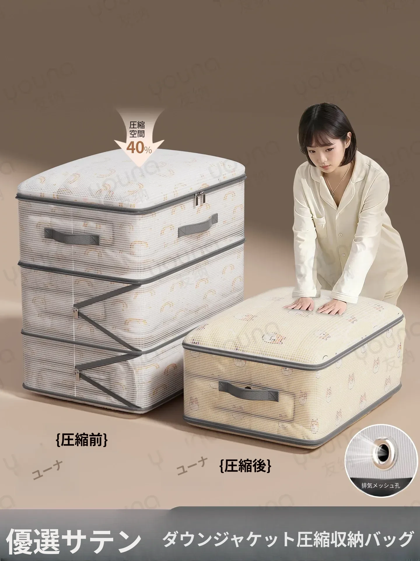 大容量羽毛服専用収納袋|衣類・布団・シルク布団をすっきり整理!圧縮収納でクローゼットも広々使える!