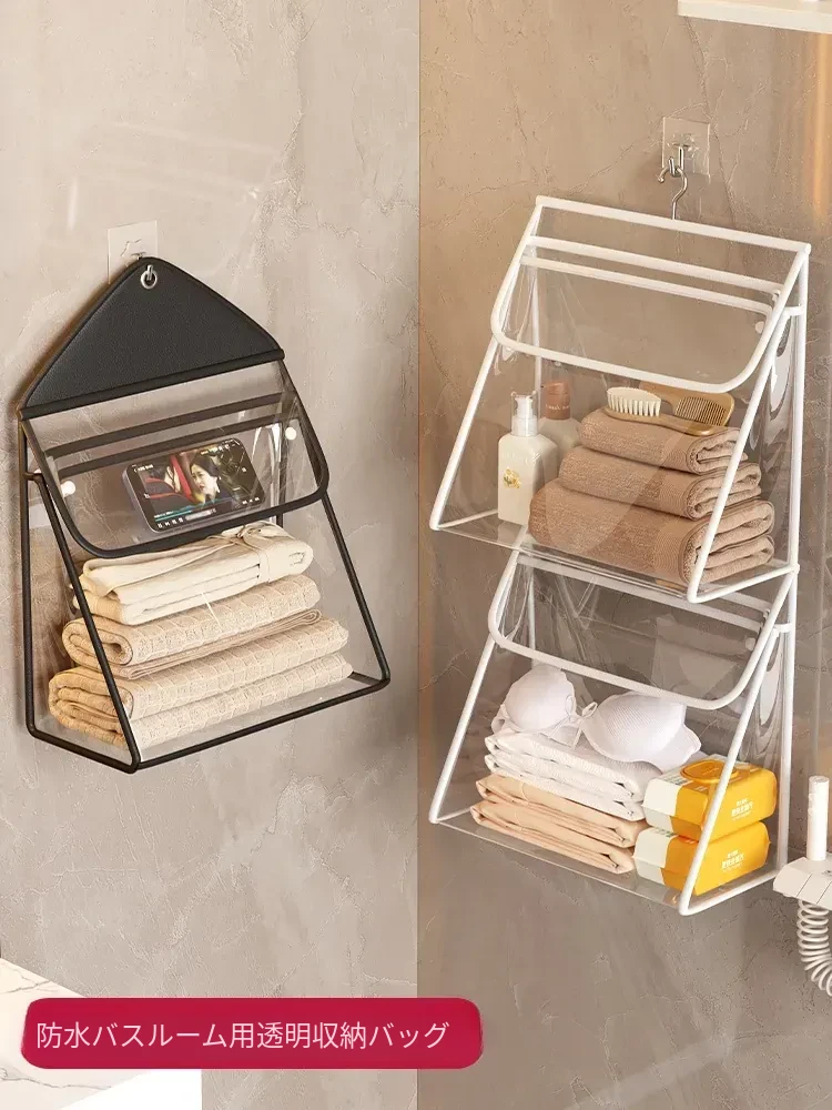 バスルーム防水バッグ - お風呂での衣類やスマホ収納に最適!大容量で整理整頓が簡単な宿舎用便利アイテム!生活をもっと快適に!