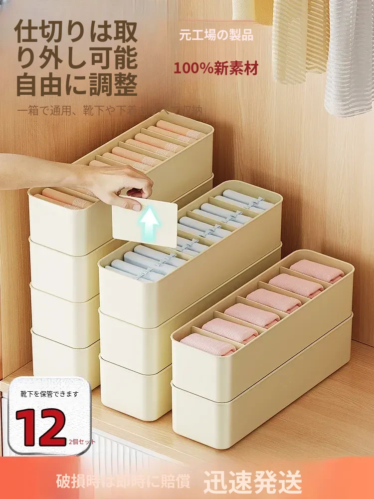 靴下・パンツ収納ボックス 家庭用引き出し式仕切り万能アイテム クローゼットでの下着・身近な衣類整理に最適!あなたのスペースをスマートに整頓!