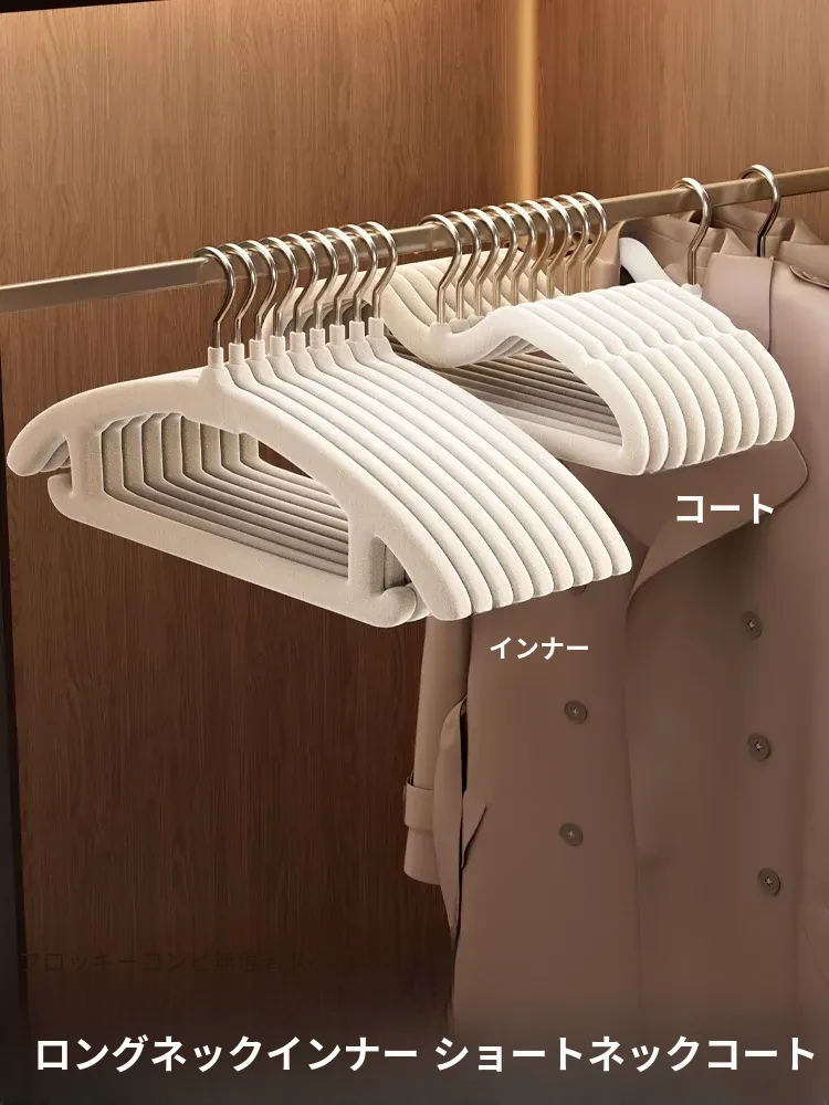滑り止め付き!肩の角を守る短い首のフロッキー衣類ハンガー - 家庭用無痕でスペースを節約!整理整頓のプロに最適な衣類ハンガー!