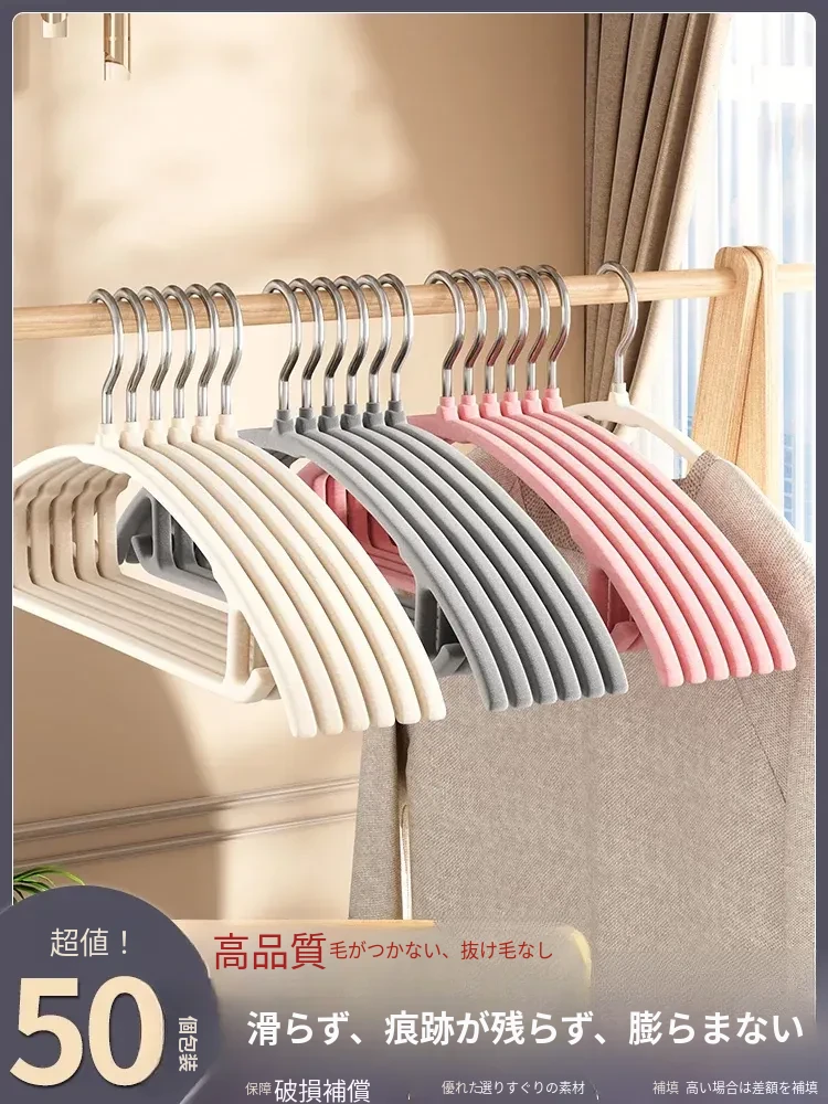 無痕フロッキングハンガー 肩の角を守る防止設計 家庭用 滑り止め機能付き 衣類をしっかりサポート 宿舎やクローゼットに最適な衣服保護ハンガー