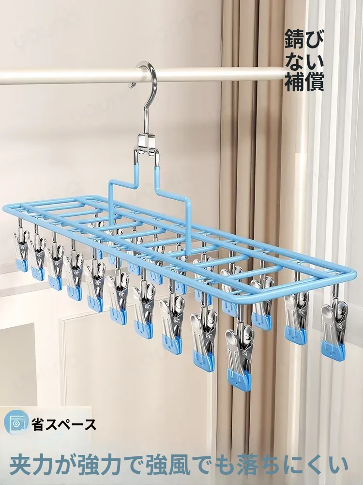 ステンレス製ソックス干しハンガー 多クリップ付き 家庭用 下着・靴下干しの必需品!バルコニーで使える多機能風防ソックスクリップ