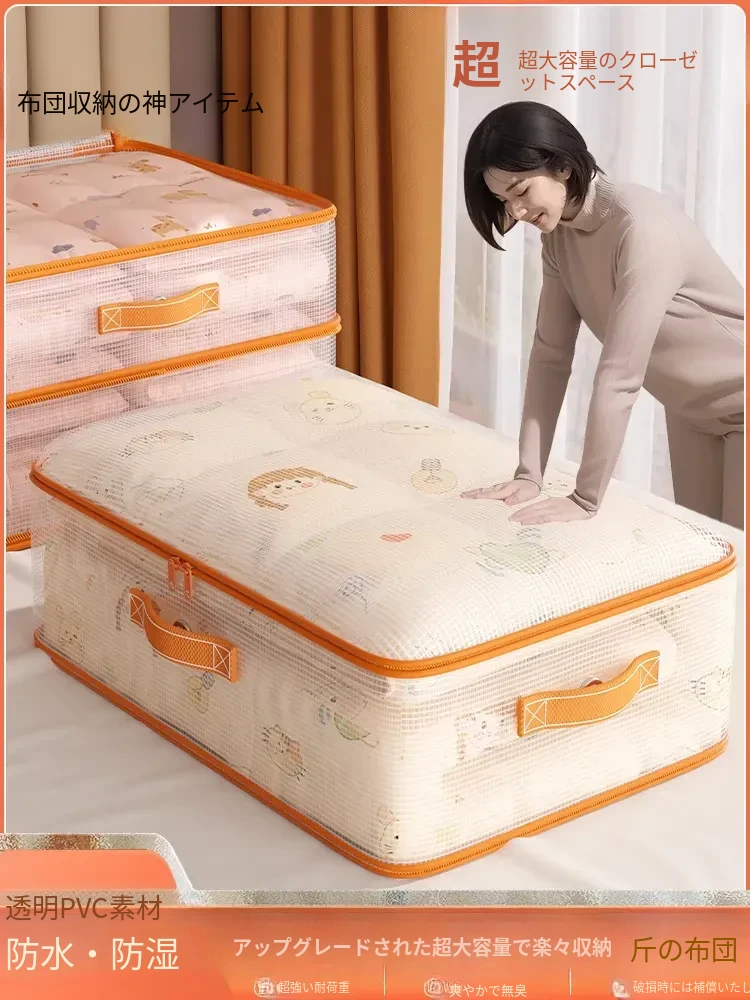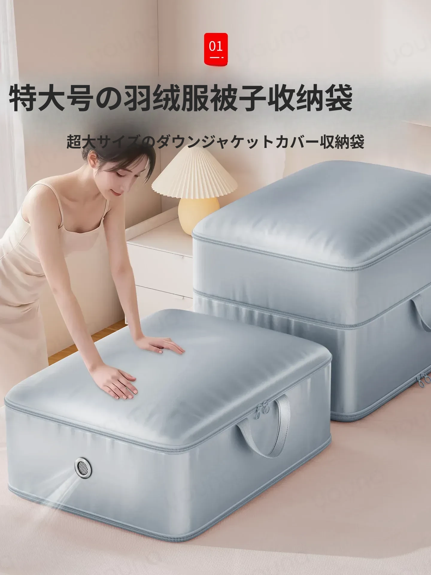 大容量羽毛布団専用圧縮収納袋 - 防水仕様で学生服や衣類もスッキリ整理!収納力抜群で、スペースを有効活用。清潔感あふれるデザインで、衣替えも楽々。