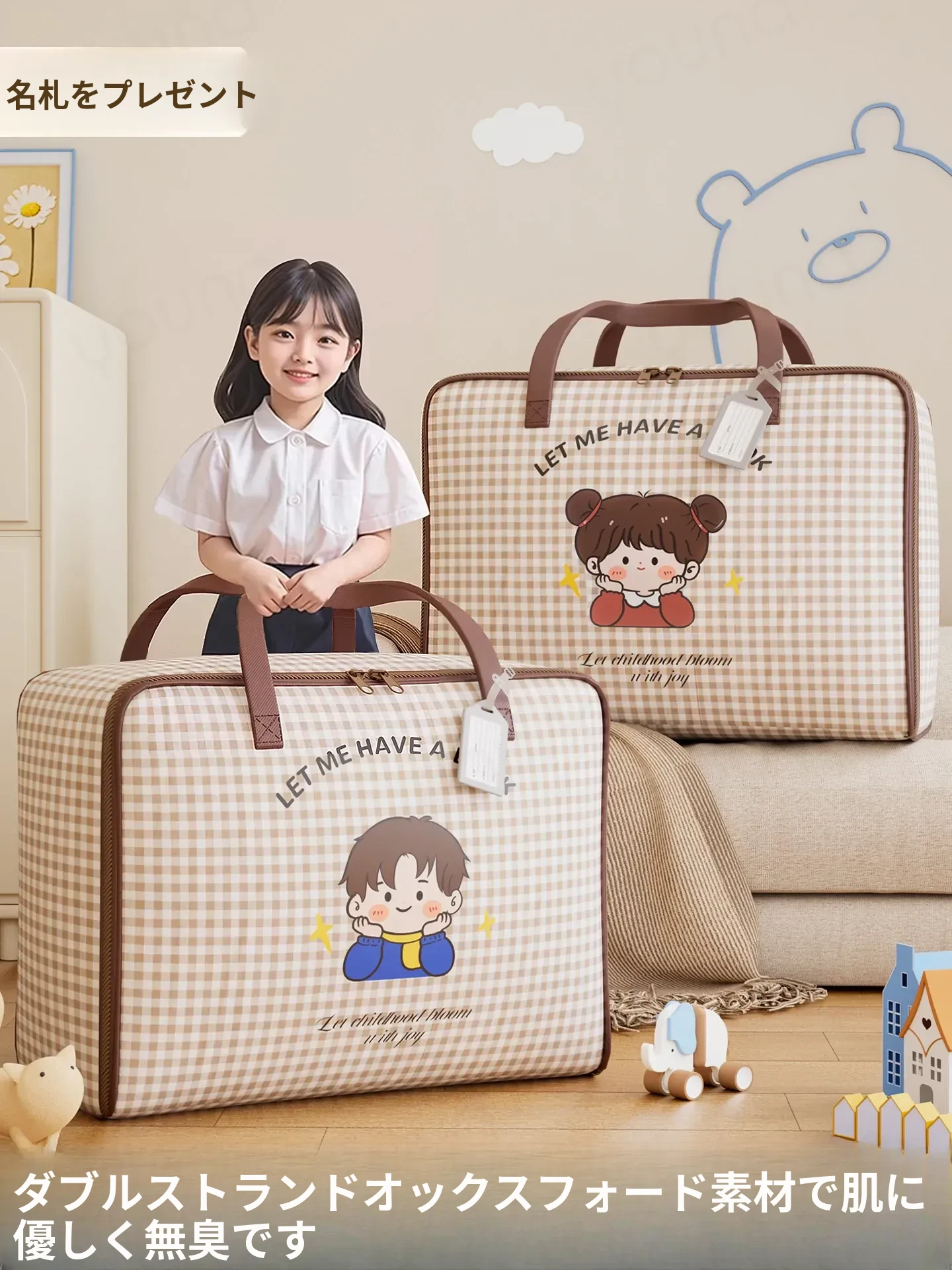 幼稚園用防湿オックスフォード布収納バッグ - 子供服や布団を整理整頓!持ち運び便利で引っ越しにも最適!