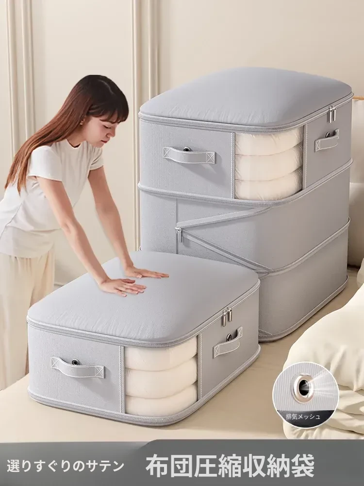 真空圧縮収納袋|布団・衣類専用|吸引不要!羽毛布団も安心収納|防水・防湿で整理整頓が簡単!あなたの生活をもっと快適にする便利アイテム!