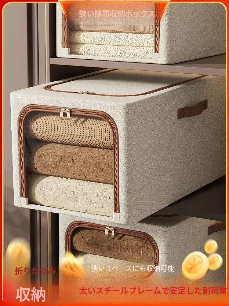 天山コットンリネン衣類収納ボックス|家庭用クローゼットの必需品!衣類や布団を整理整頓する魔法のアイテム|折りたたみ可能なファブリックストレージバスケットでスッキリとした空間を実現!