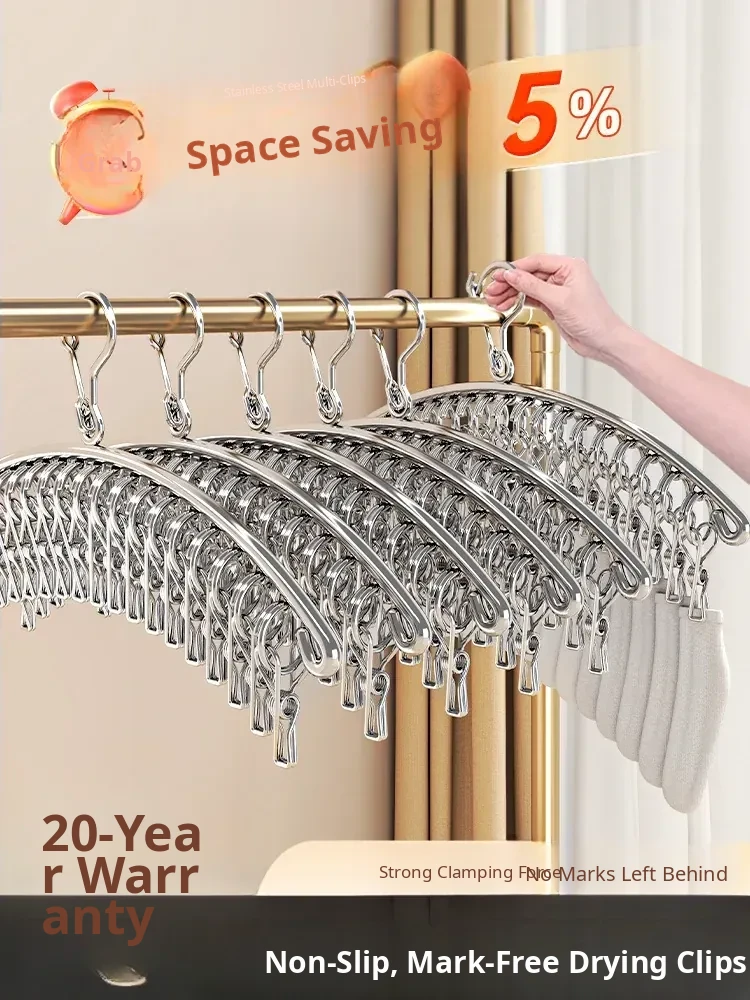 Stainless Steel Sock Drying Rack with Multiple Clips - The Ultimate Home Helper for Drying Socks, Underwear, and Lingerie - Windproof Design Perfect for Students and Everyday Use!